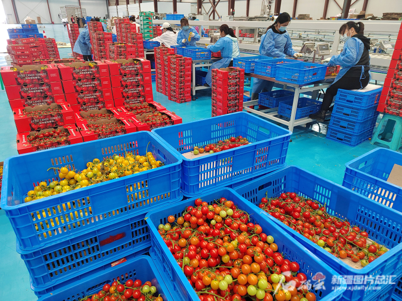 4月22日,工作人員在霍爾果斯現(xiàn)代農(nóng)業(yè)科技產(chǎn)業(yè)園包裝車(chē)間分裝各類(lèi)西紅柿。天山網(wǎng)-新疆日?qǐng)?bào)記者 鄒懿攝