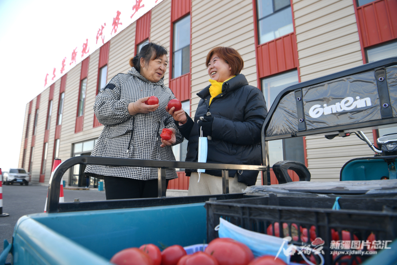 4月22日,霍爾果斯市民在霍爾果斯現(xiàn)代農(nóng)業(yè)科技產(chǎn)業(yè)園選購(gòu)西紅柿后現(xiàn)場(chǎng)品嘗。天山網(wǎng)-新疆日?qǐng)?bào)記者 鄒懿攝