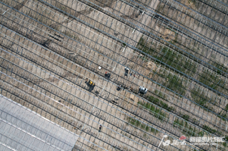 4月22日,從空中俯瞰正在搭建的霍爾果斯現(xiàn)代農(nóng)業(yè)科技產(chǎn)業(yè)園智能溫室(無(wú)人機(jī)拍攝)。天山網(wǎng)-新疆日?qǐng)?bào)記者 鄒懿攝