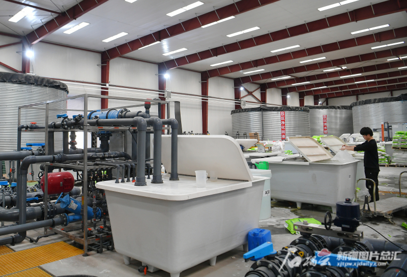 4月22日,工作人員在霍爾果斯現(xiàn)代農(nóng)業(yè)科技產(chǎn)業(yè)園為西紅柿配置營(yíng)養(yǎng)液。天山網(wǎng)-新疆日?qǐng)?bào)記者 鄒懿攝