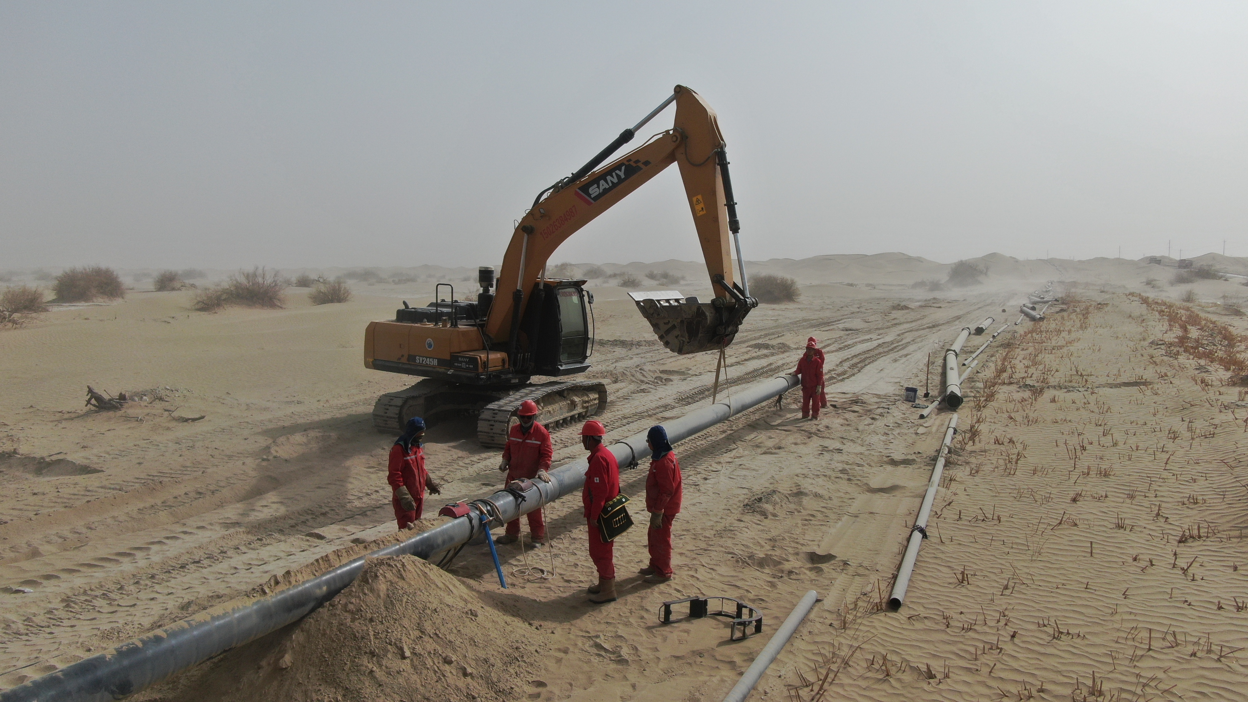 塔里木油田博孜—大北加快外輸管線建設(shè)(3月29日攝)。 譚輝 攝