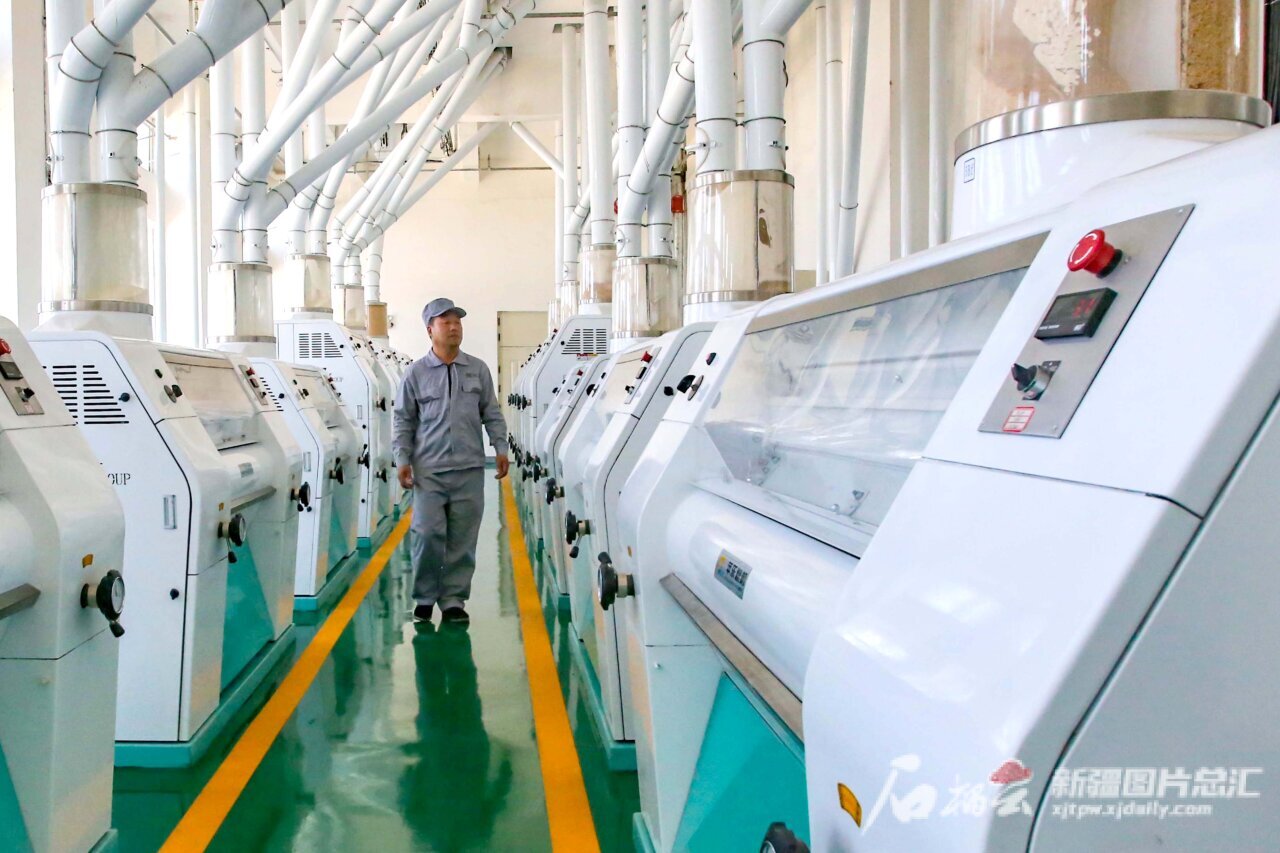 7月21日,工人在新疆豐驛農(nóng)業(yè)發(fā)展有限公司面粉生產(chǎn)車間里監(jiān)測(cè)設(shè)備運(yùn)行情況。