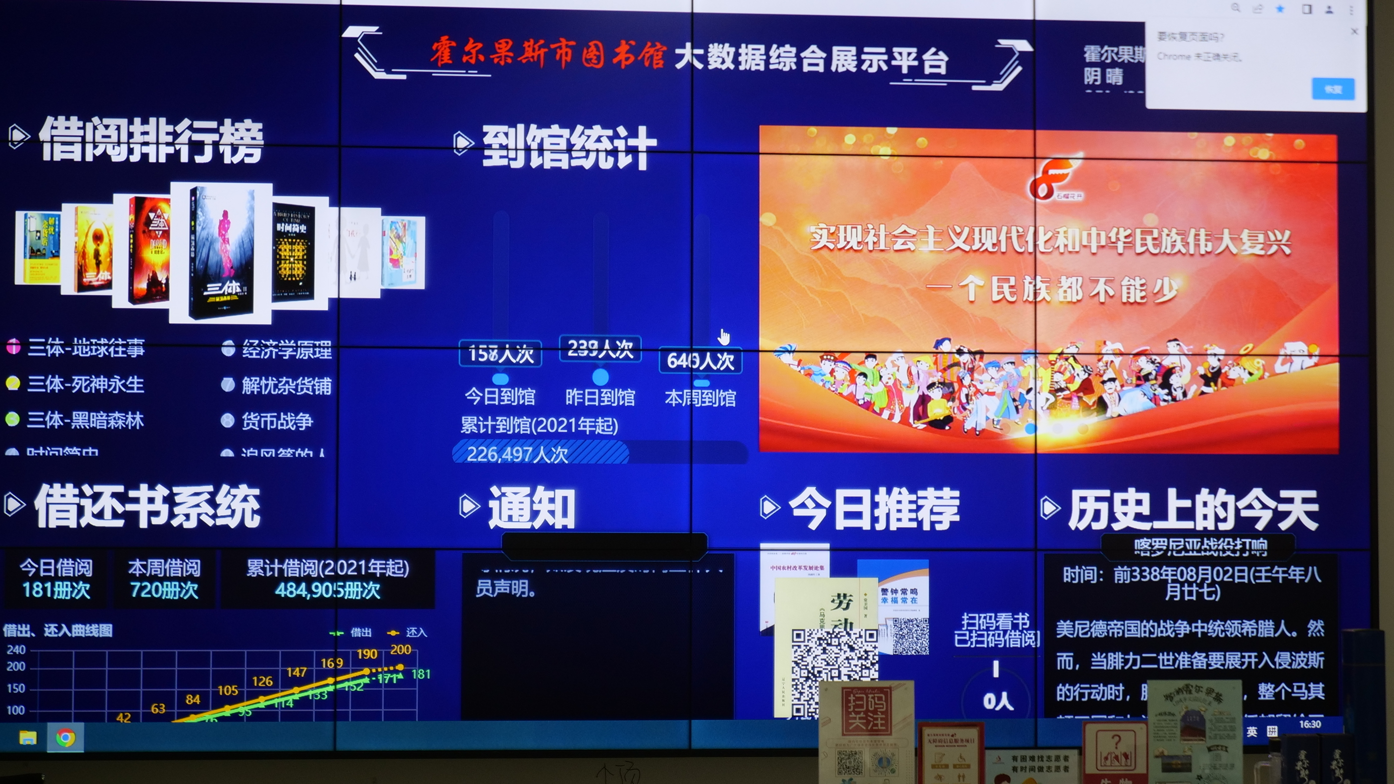 圖為霍爾果斯市圖書(shū)館大數(shù)據(jù)綜合展示平臺(tái)。 天山網(wǎng)-新疆日?qǐng)?bào)記者 巴莎·鐵格斯攝