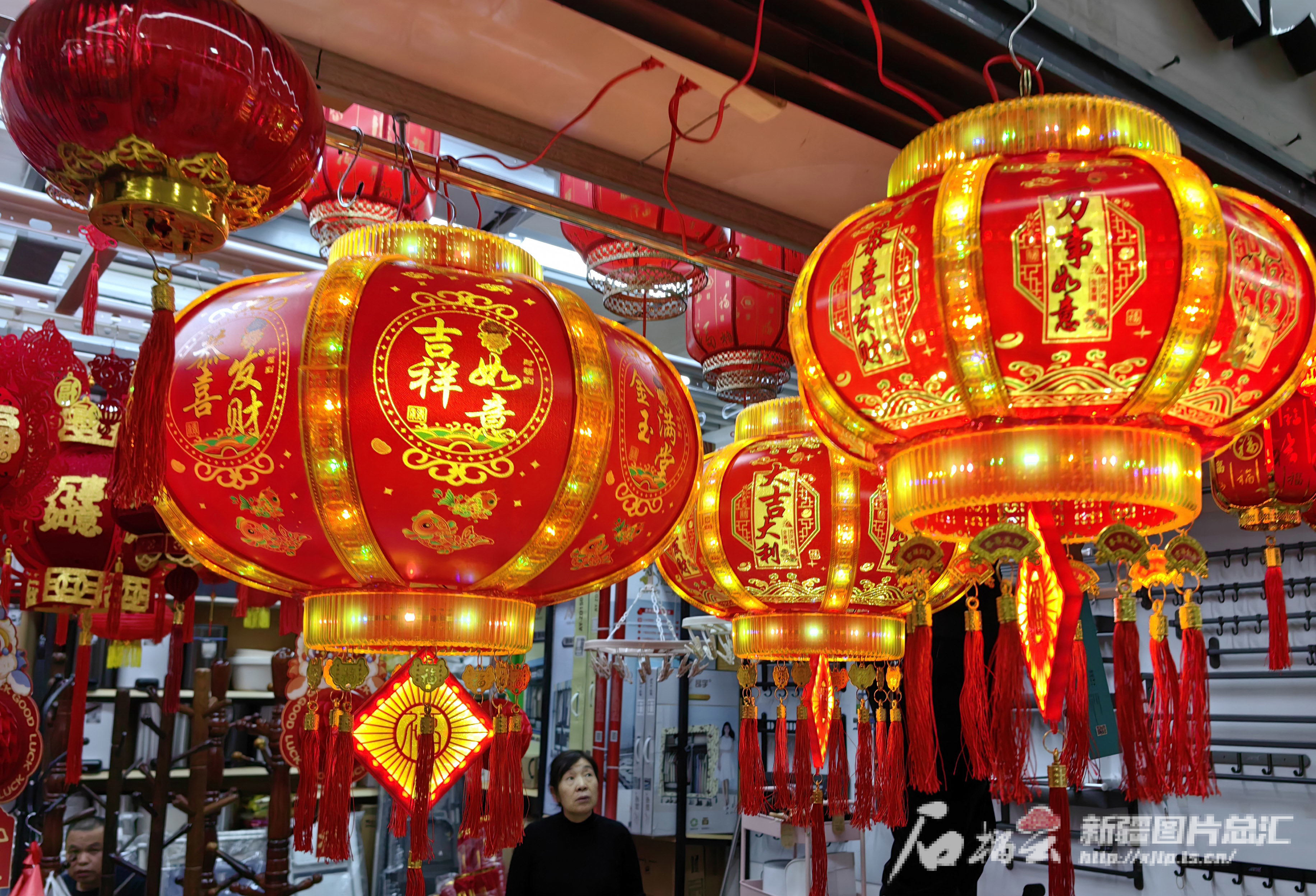 2月9日,在烏魯木齊市一批發(fā)市場內(nèi)商家早早將各式花燈懸掛起來。