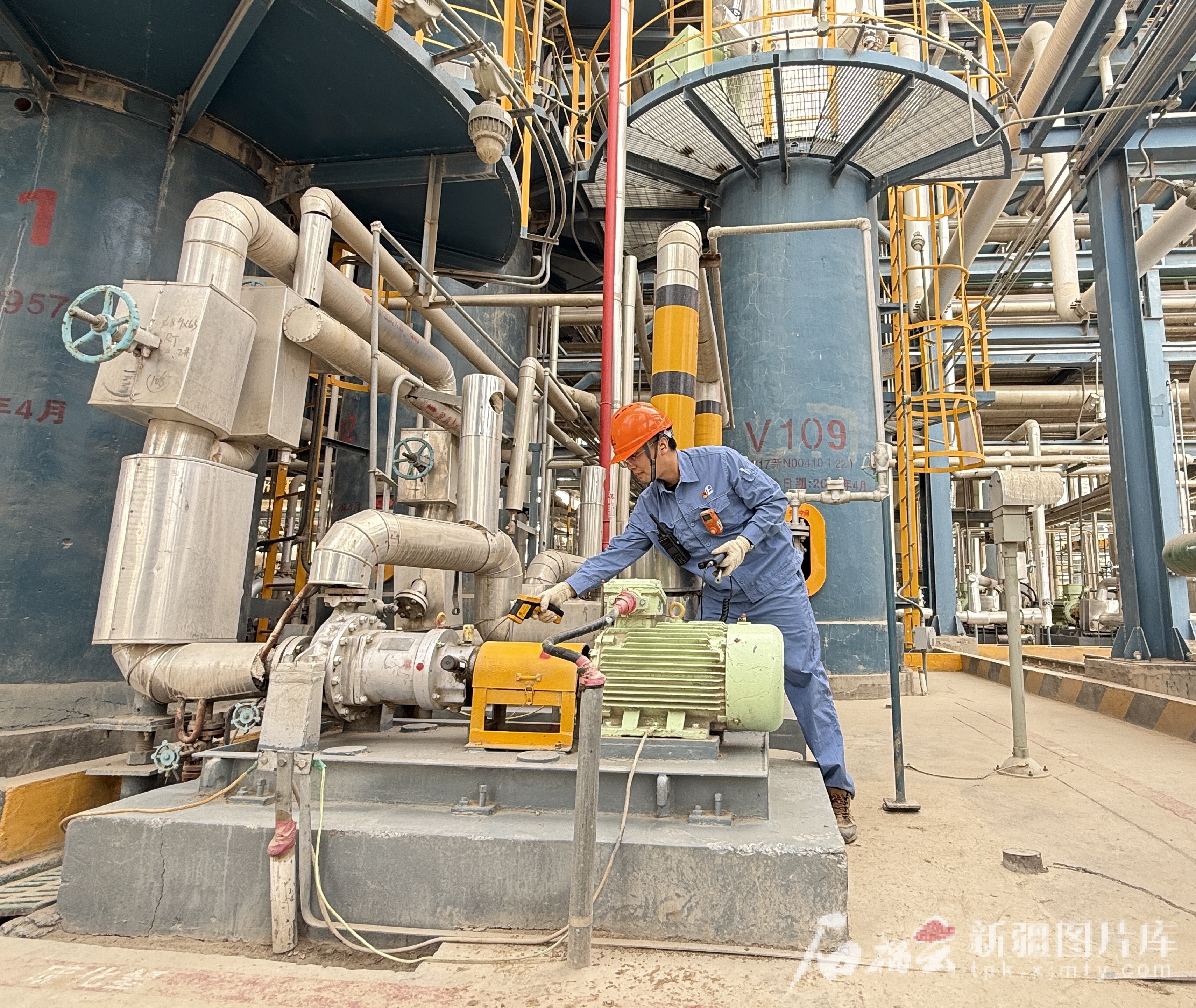 5月18日,在中國石化塔河煉化有限責任公司低凝柴油裝置區(qū),工作人員正在開展巡檢工作。天山網(wǎng)-新疆日報記者 拍熱扎提·阿不都攝