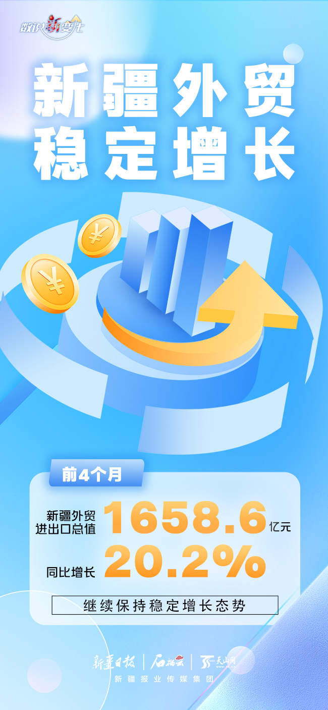 前4個(gè)月,新疆外貿(mào)進(jìn)出口總值1658.6億元,同比增長20.2%,繼續(xù)保持穩(wěn)定增長態(tài)勢。各口岸成績單怎樣?哪些口岸增長迅速?今天的《數(shù)說“新”變化》一起來看看。