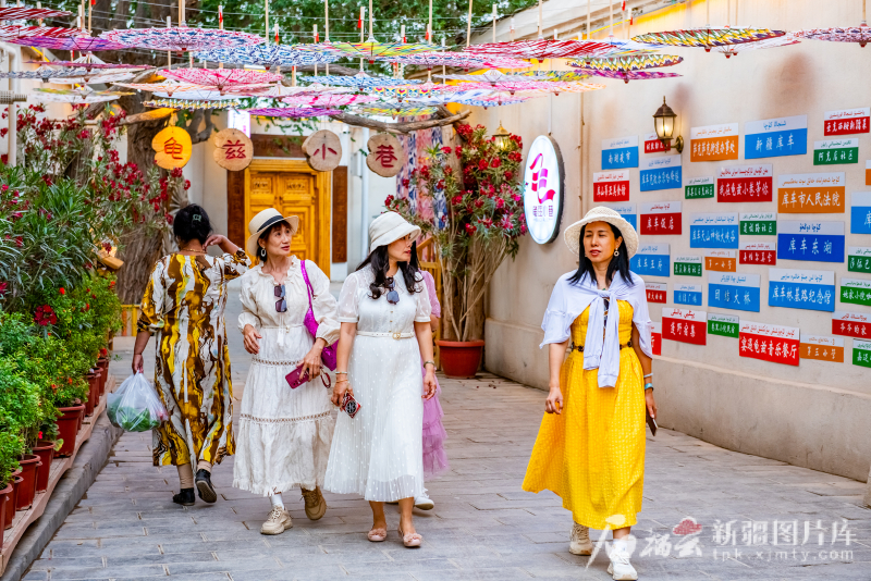 5月29日,游客在庫車市老城區(qū)的龜茲小巷打卡。這條小巷曾是臟亂不堪的“泥巴巷”,這兩年在政府的保護和修繕下,實現(xiàn)了向文旅時尚小巷的華麗蝶變。李向東攝