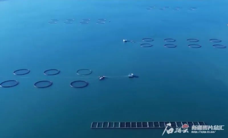 俯瞰伊犁哈薩克自治州尼勒克縣三文魚(yú)養(yǎng)殖基地,圓形養(yǎng)殖網(wǎng)箱錯(cuò)落有致地分布在天然水庫(kù)之中(資料圖)。趙學(xué)林?jǐn)z