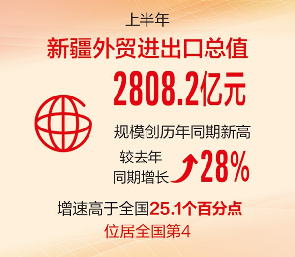 上半年新疆外貿(mào)進出口總值同比增長28%