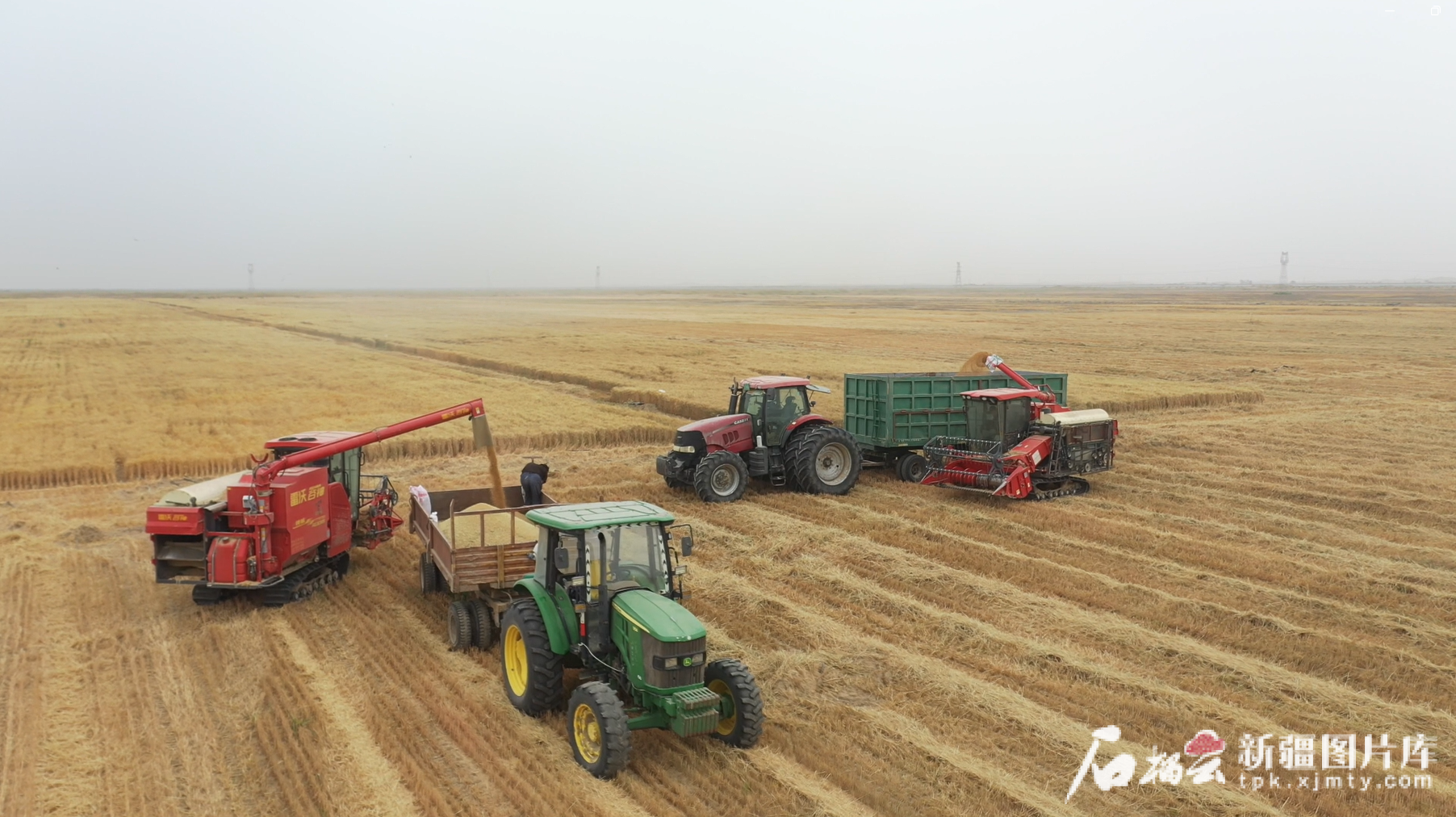 7月初,且末縣南緣的塔克拉瑪干沙漠腹地,小麥聯(lián)合收割機(jī)來回穿梭在金黃色小麥地里。這片由沙漠改造而來的新糧田,迎來了第一次豐收。