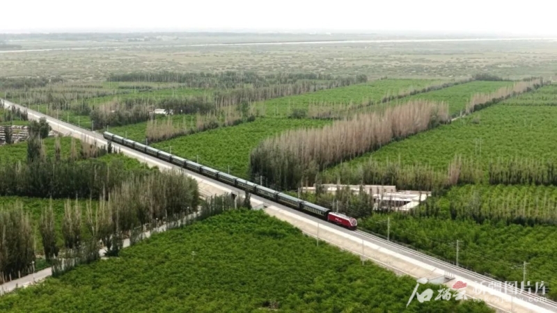 7月2日,K4532次列車駛過若羌縣。若羌縣融媒體中心供圖