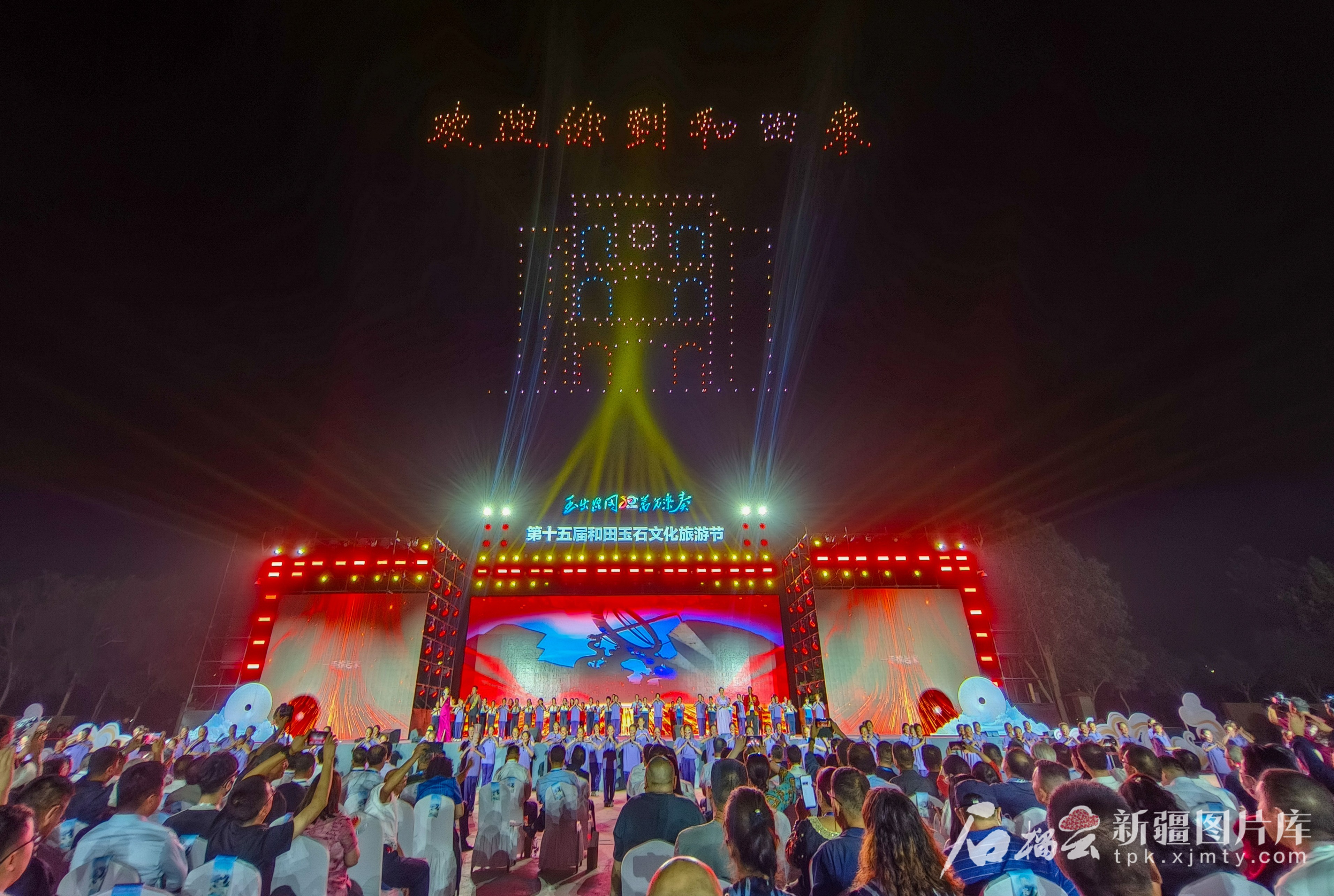 千架無(wú)人機(jī)點(diǎn)亮和田夜空為玉石文化旅游節(jié)添彩。 許曉龍攝
