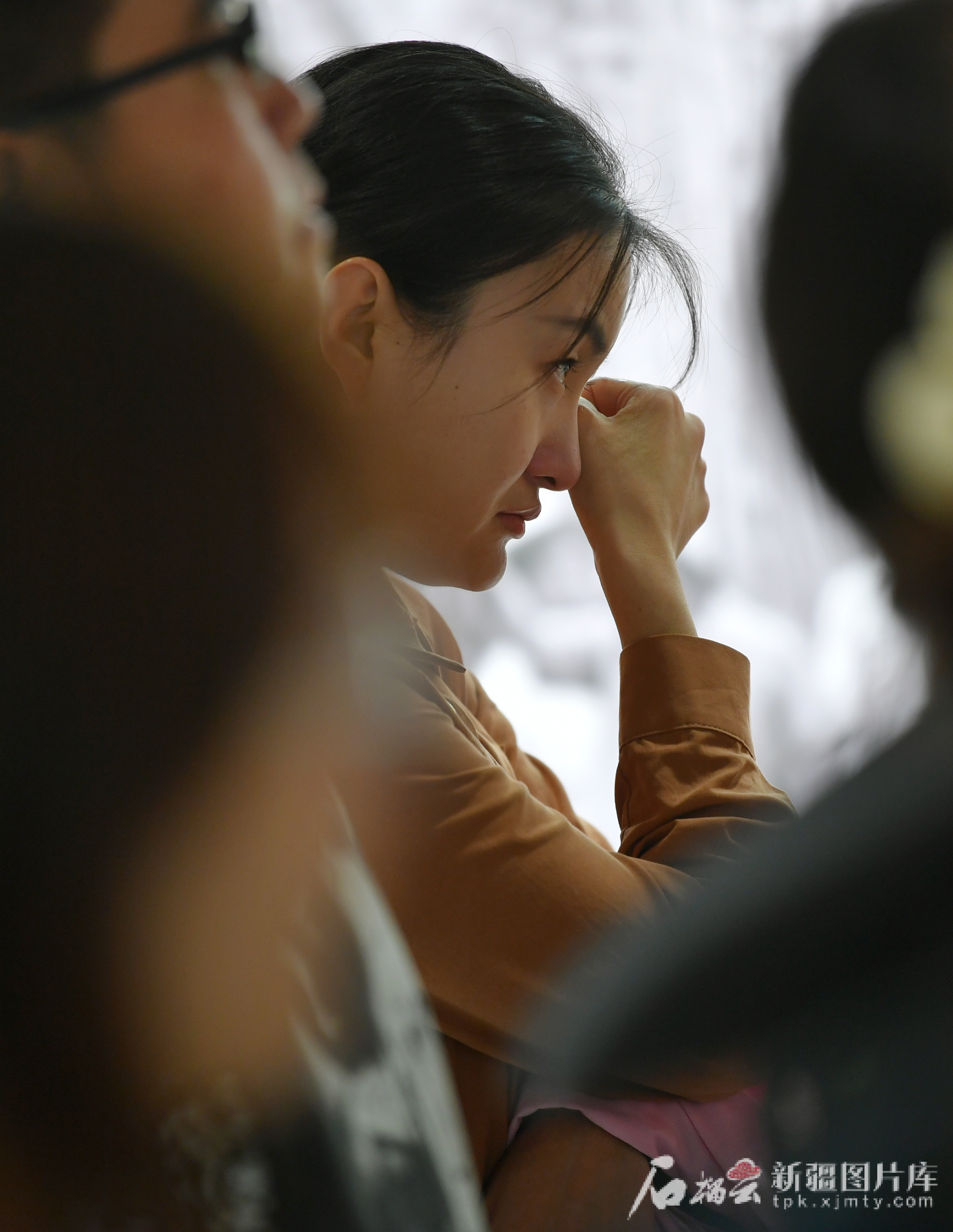 8月6日,采訪團(tuán)成員在喀拉喀什河渠首愛國主義教育基地參觀時(shí)流下熱淚。