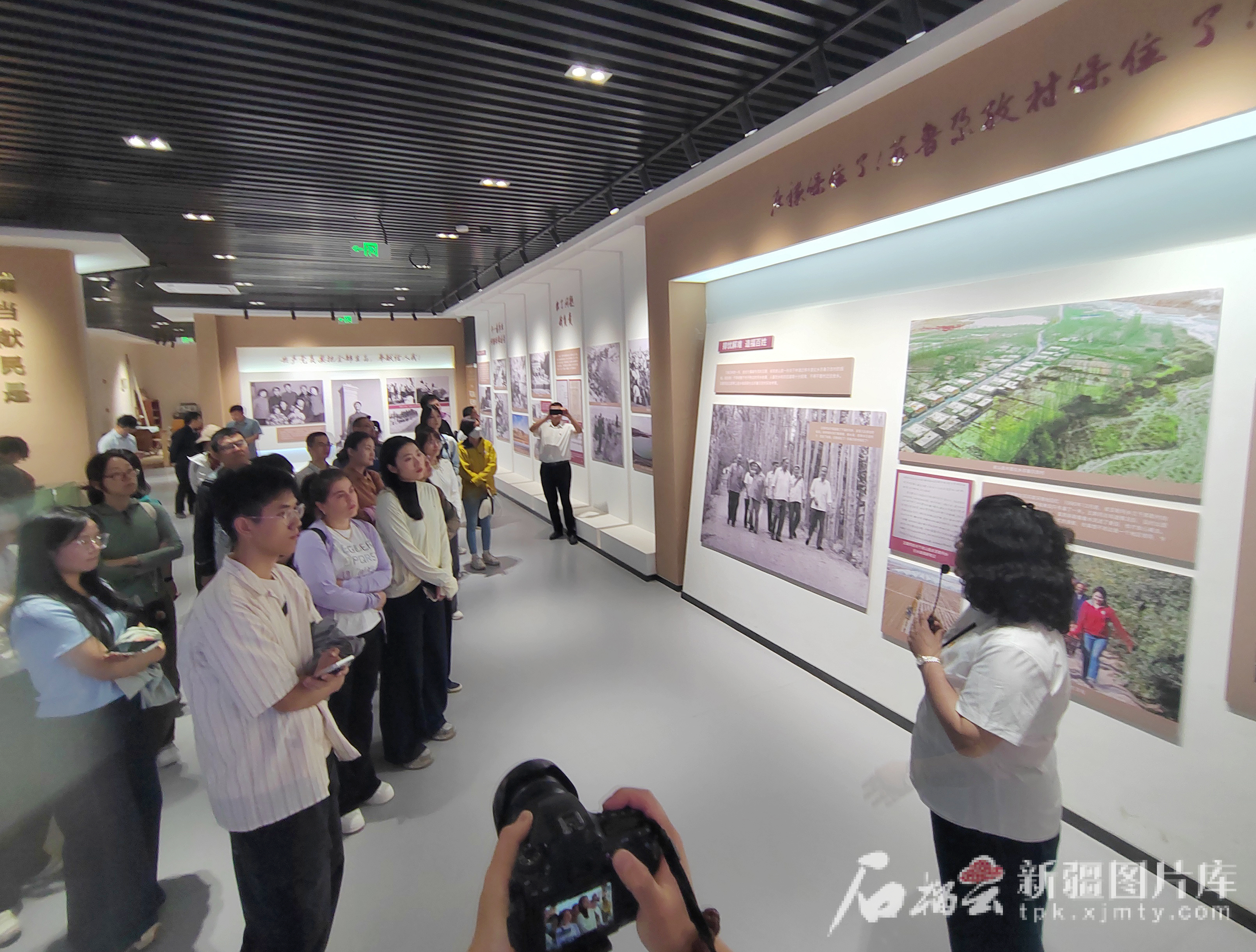 8月6日,采訪團(tuán)成員在喀拉喀什河渠首愛國主義教育基地內(nèi)參觀。