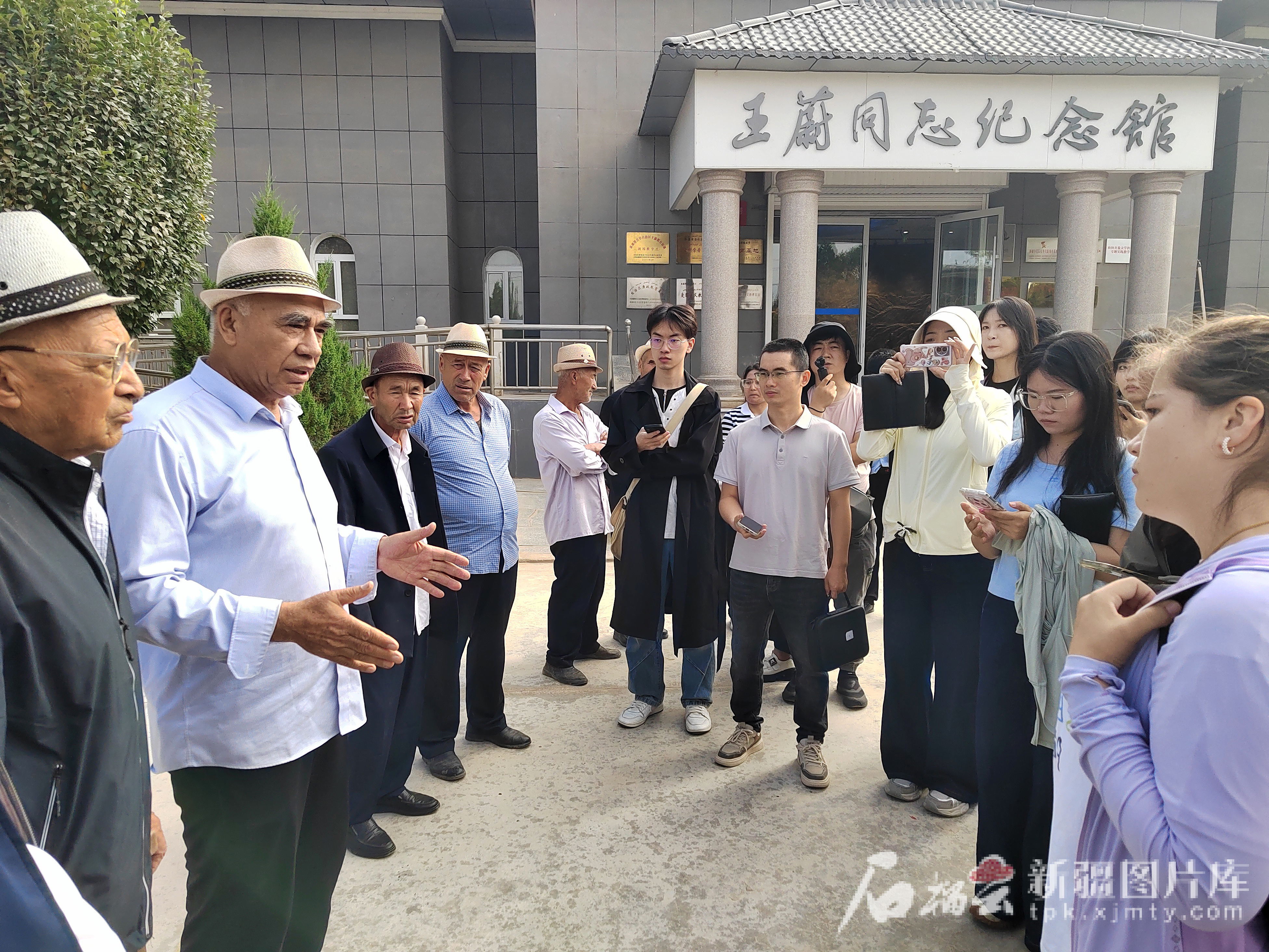 8月6日,和田縣水利局退休干部麥麥提·麥色依提(左二)給采訪團(tuán)一行講述自己和王蔚共同經(jīng)歷的往事。