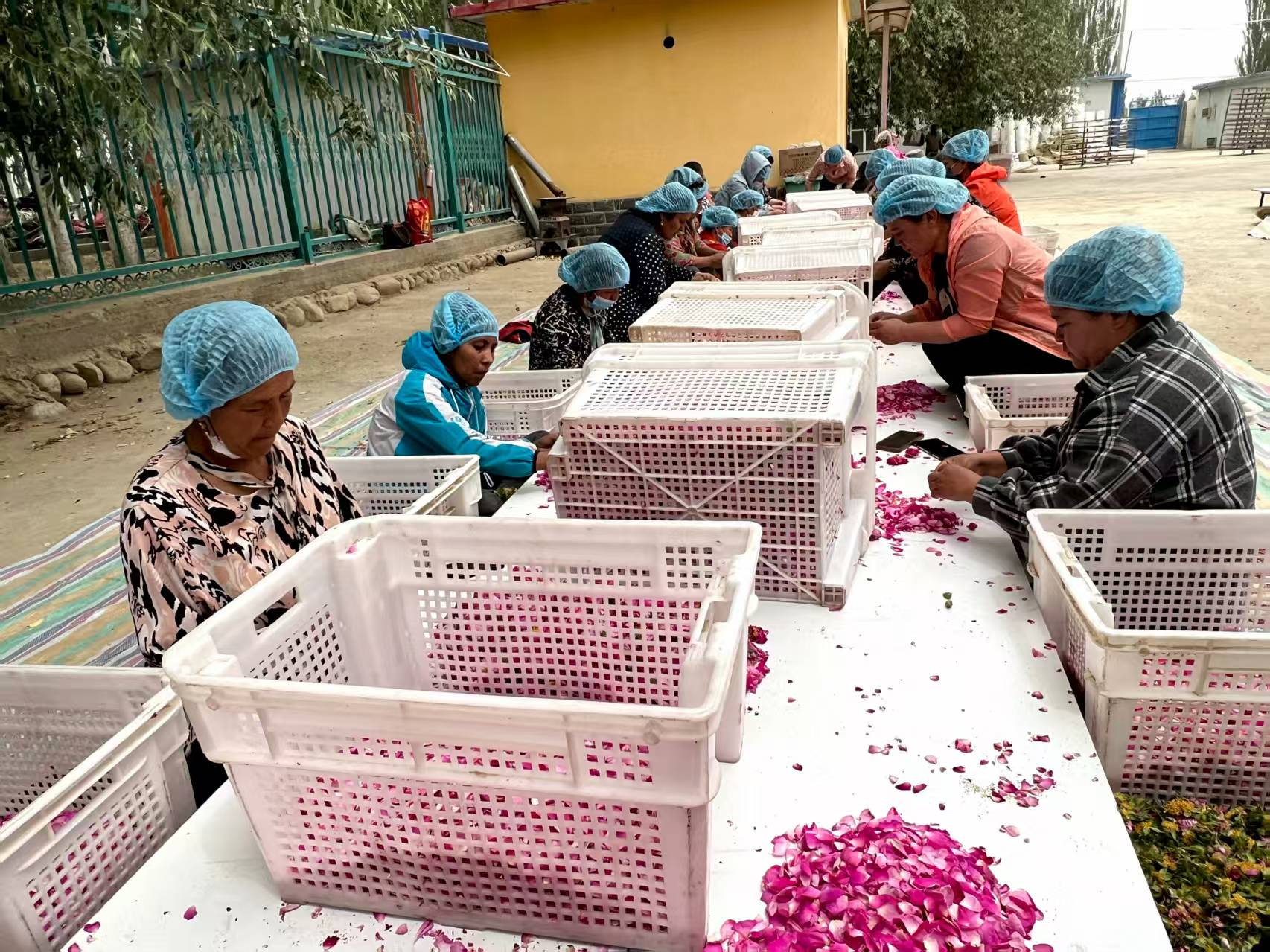 于田縣充分利用當(dāng)?shù)鬲?dú)特的自然條件,大力引導(dǎo)各村發(fā)展特色經(jīng)濟(jì)農(nóng)作物種植。8月12日,記者在于田縣多個(gè)村莊的田間地頭看到,玫瑰、肉蓯蓉、葡萄等經(jīng)濟(jì)作物長(zhǎng)勢(shì)喜人。這些作物不僅具有較高的經(jīng)濟(jì)價(jià)值,還形成了從種植、加工到銷售的完整產(chǎn)業(yè)鏈。