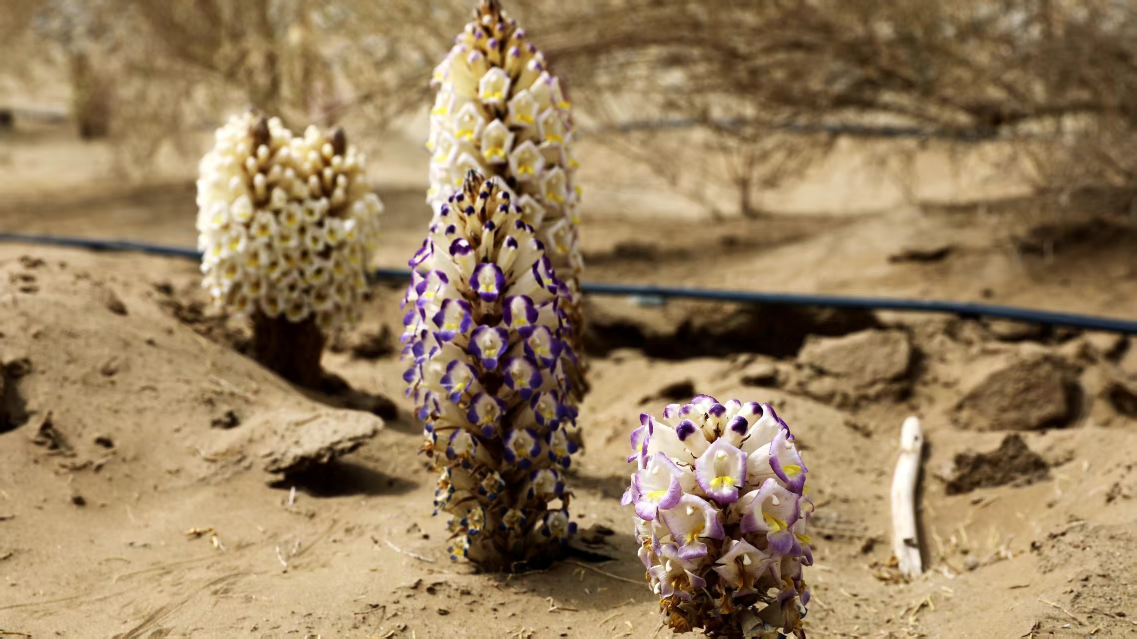 于田縣鼓勵(lì)各村種植梭梭、檉柳等耐旱植物,并在梭梭根部嫁接肉蓯蓉,長(zhǎng)出來的肉蓯蓉長(zhǎng)勢(shì)喜人。布沙日汗·買買提明 攝