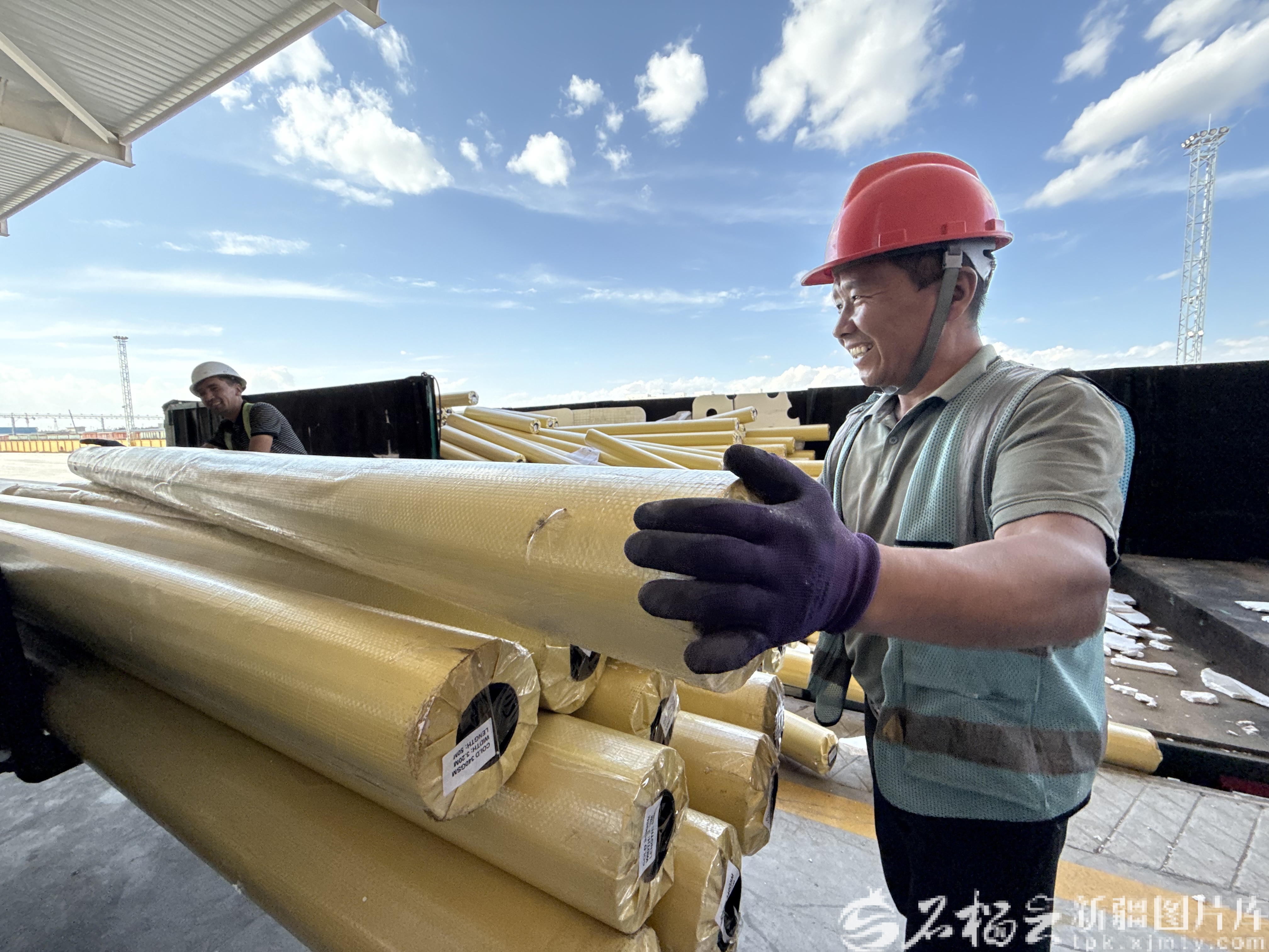 9月9日,從公路集結(jié)的珍珠棉產(chǎn)品正在等待裝卸出口。天山網(wǎng)-新疆日?qǐng)?bào)記者 孫芳婷攝