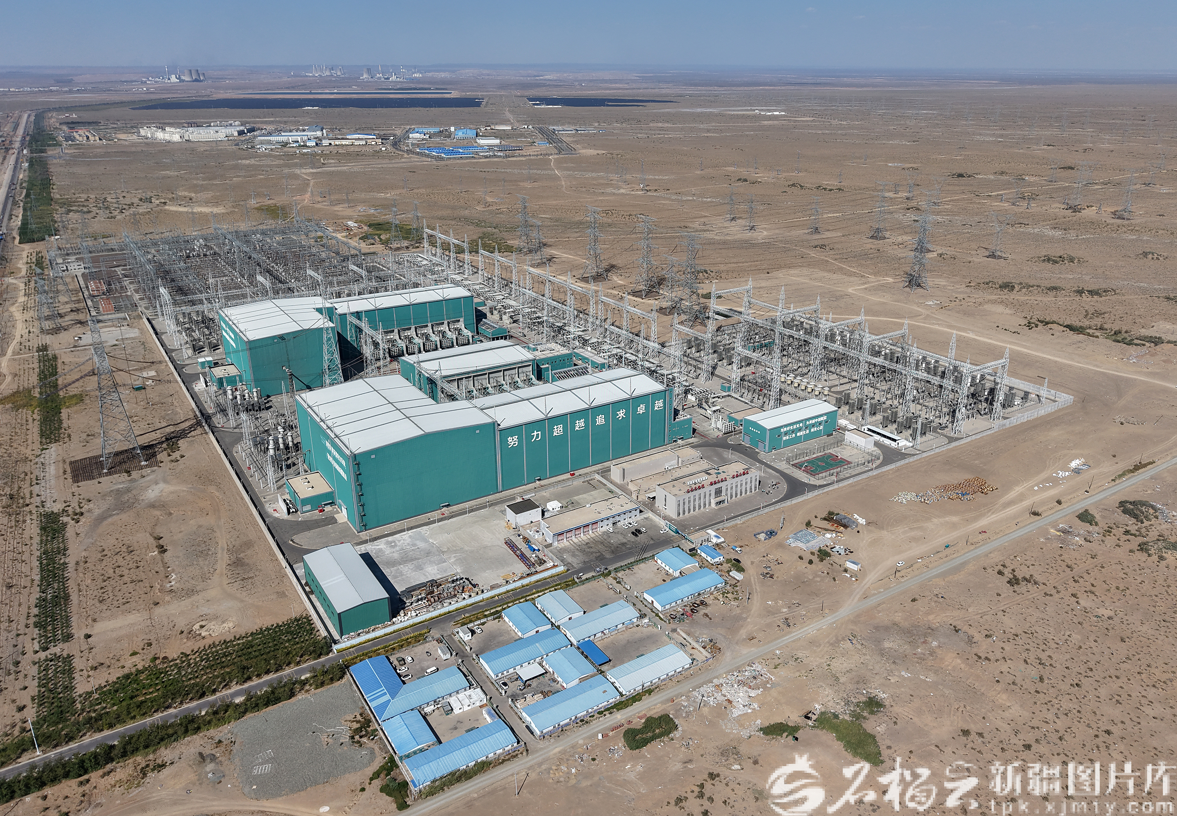 9月9日,俯瞰昌吉—古泉±1100千伏特高壓直流輸電工程昌吉換流站全景。