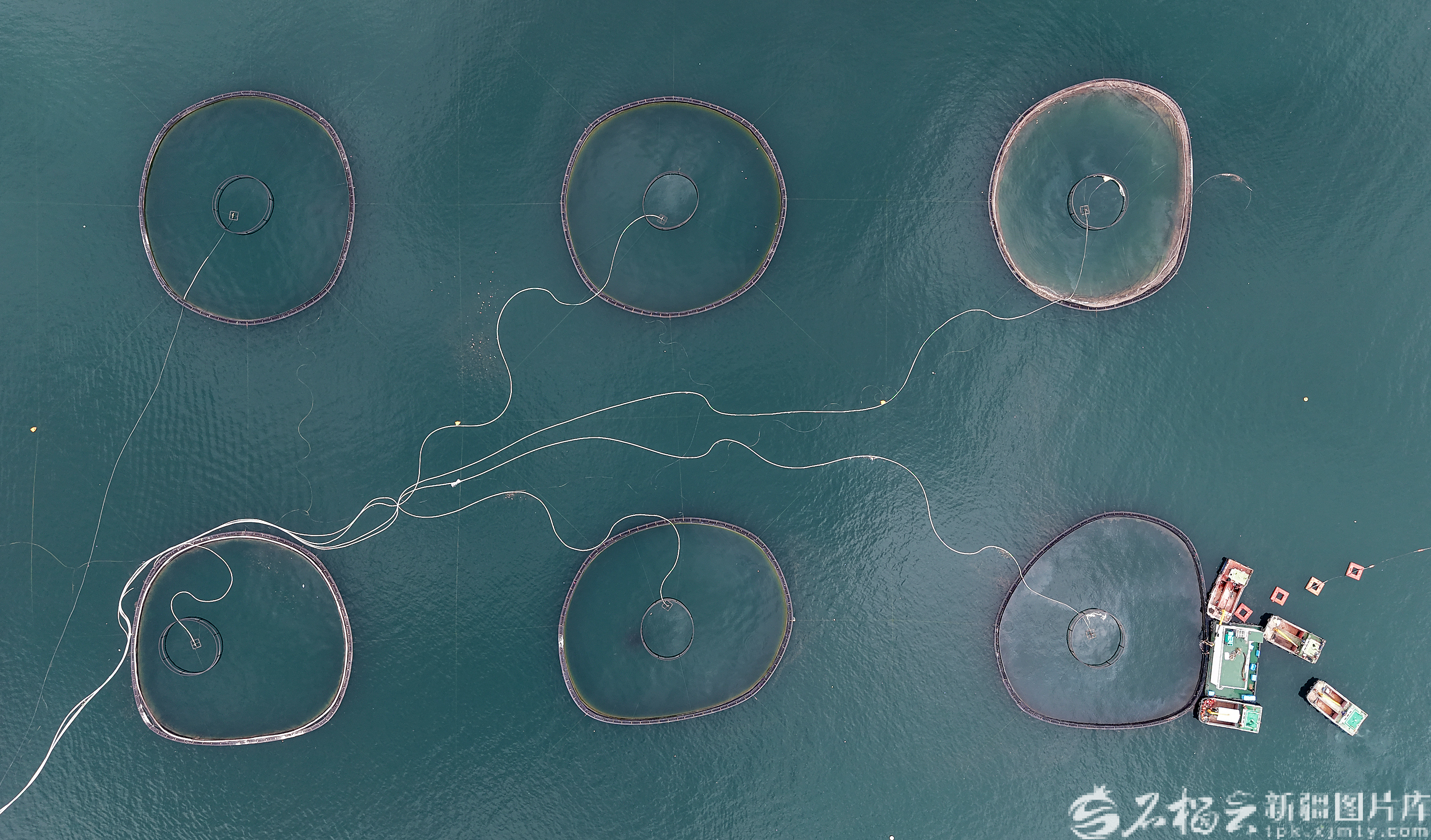 9月18日,俯瞰鞏留縣天蘊(yùn)漁業(yè)有限公司養(yǎng)殖基地的網(wǎng)箱。