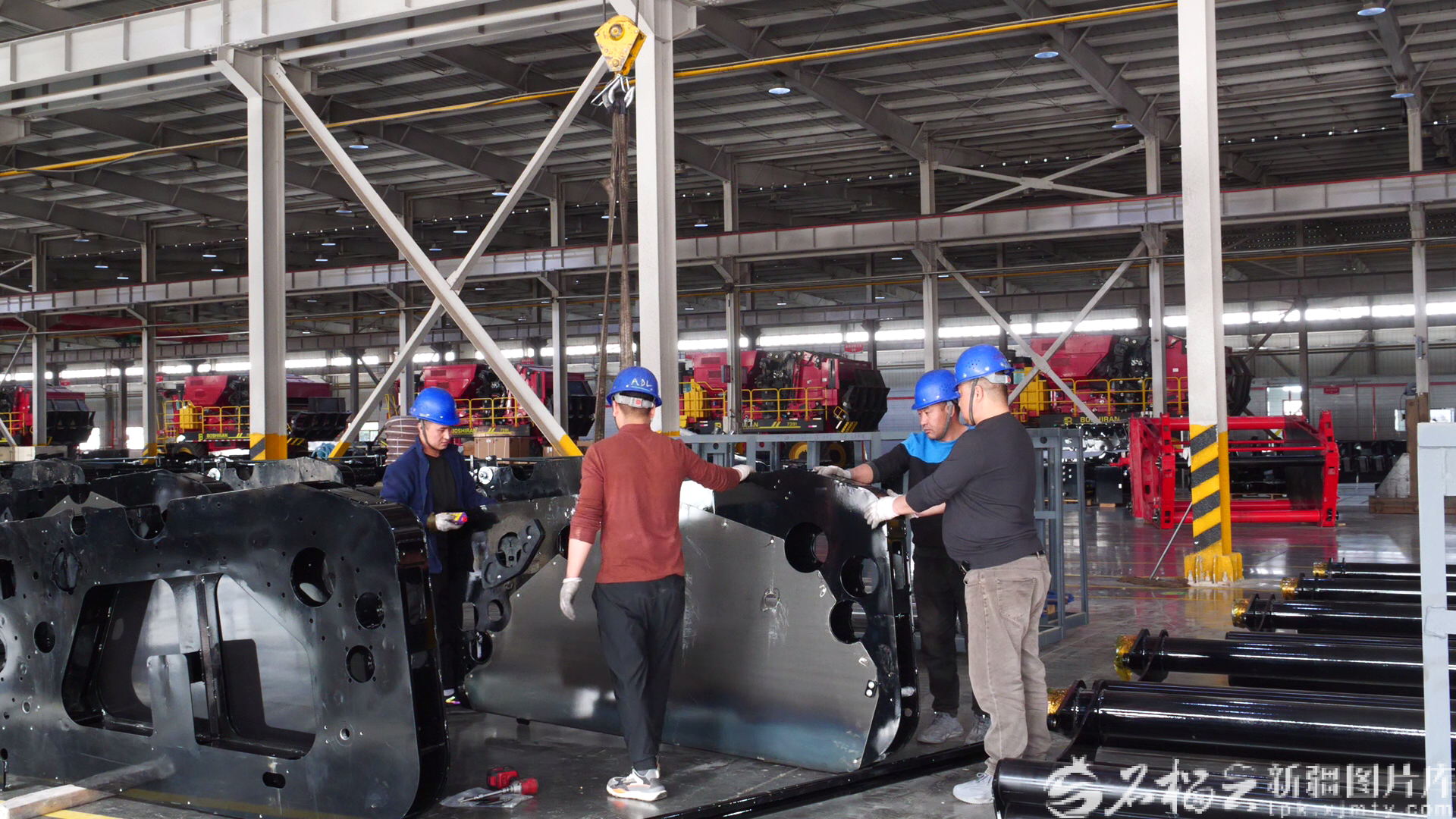 10月9日,沙雅缽施然智能農(nóng)機有限公司生產(chǎn)車間內(nèi),工人們在組裝采棉機。王水江攝