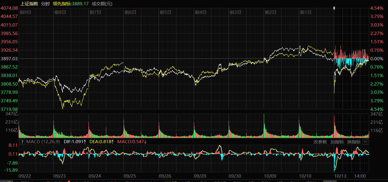 天山網(wǎng)-新疆日?qǐng)?bào)訊(記者王永飛報(bào)道)10月13日,A股三大指數(shù)今日集體回調(diào),市場全天震蕩回升。截至收盤,滬指跌0.19%,報(bào)收3889.50點(diǎn);深證成指跌0.93%,報(bào)收13231.47點(diǎn);創(chuàng)業(yè)板指跌1.11%,報(bào)收3078.76點(diǎn)。滬深兩市成交額達(dá)到23548億元,較前一個(gè)交易日縮量1609億元。
