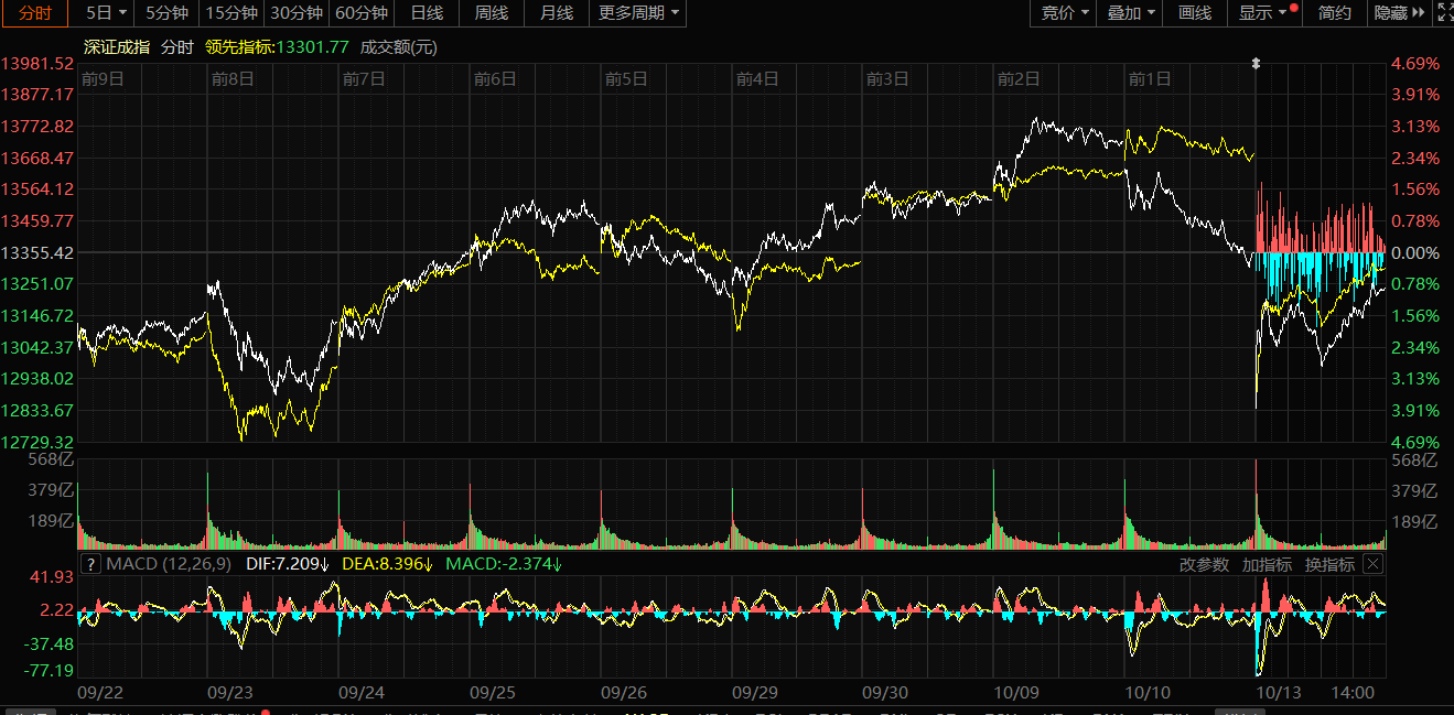深證成指近十日變化趨勢(來源:東方財(cái)富)。