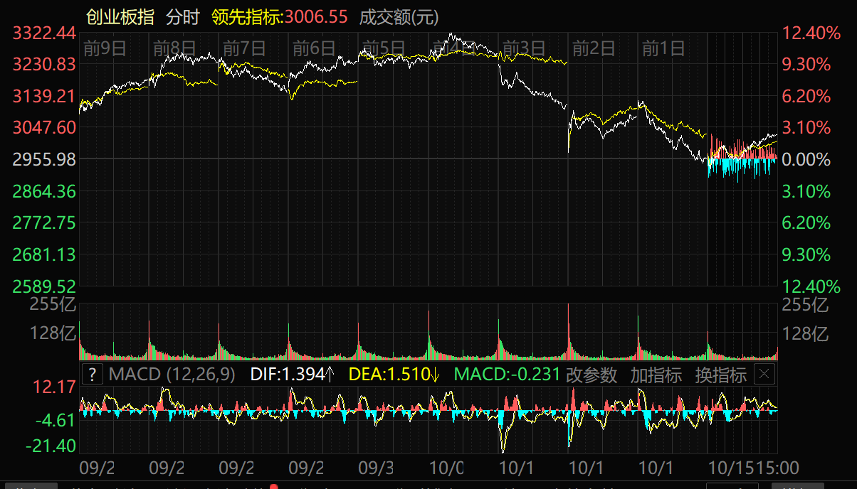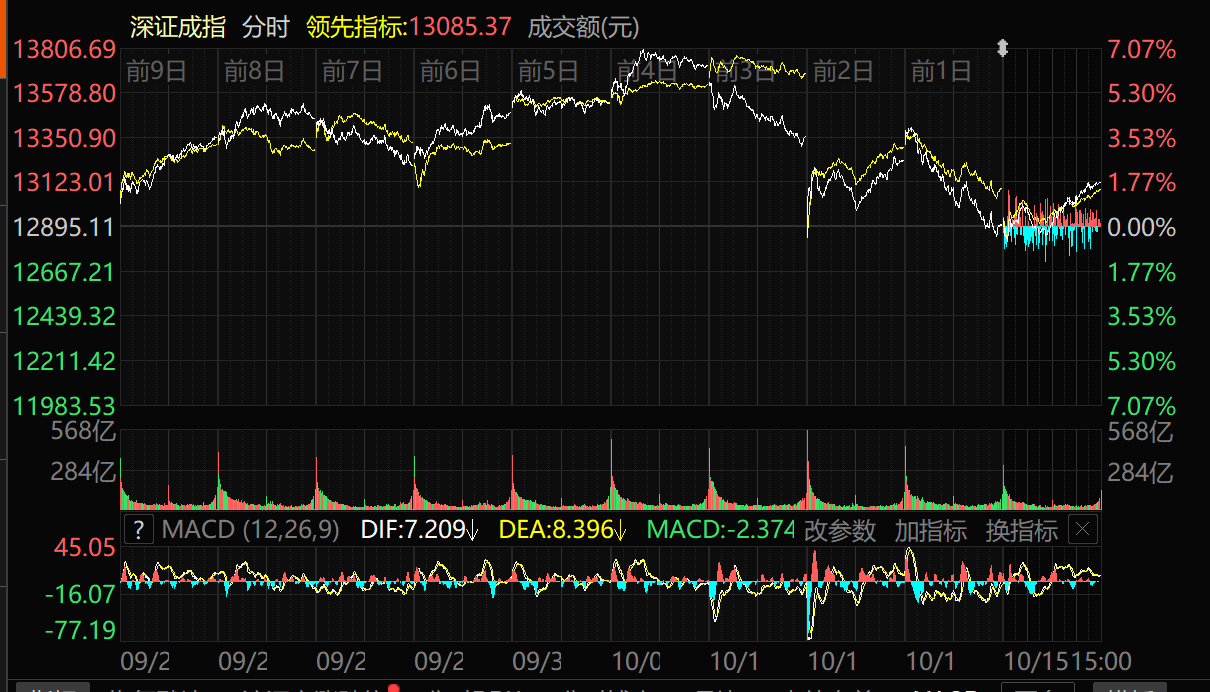 天山網(wǎng)-新疆日報訊(記者王永飛報道)10月15日,A股三大指數(shù)重拾升勢,滬指收復(fù)3900點整數(shù)關(guān)口。截至收盤,滬指漲1.22%,報收3912.21點;深證成指漲1.73%,報收13118.75點;創(chuàng)業(yè)板指漲2.36%,報收3025.87點。滬深兩市成交額達(dá)到20729億元,較昨日大幅縮量5034億元。