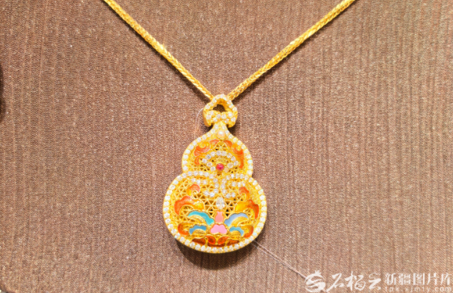 “這個(gè)寶葫蘆紋樣的琺瑯吊墜,配裙子、搭衛(wèi)衣都不錯(cuò)?!?0月10日,烏魯木齊市紅山新世紀(jì)購物廣場(chǎng)一家黃金飾品店內(nèi),古麗扎爾?阿不都熱合曼給記者展示著剛?cè)胧值牡鯄嫛?/p>