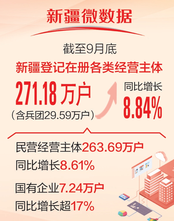 新疆登記在冊經(jīng)營主體達271.18萬戶