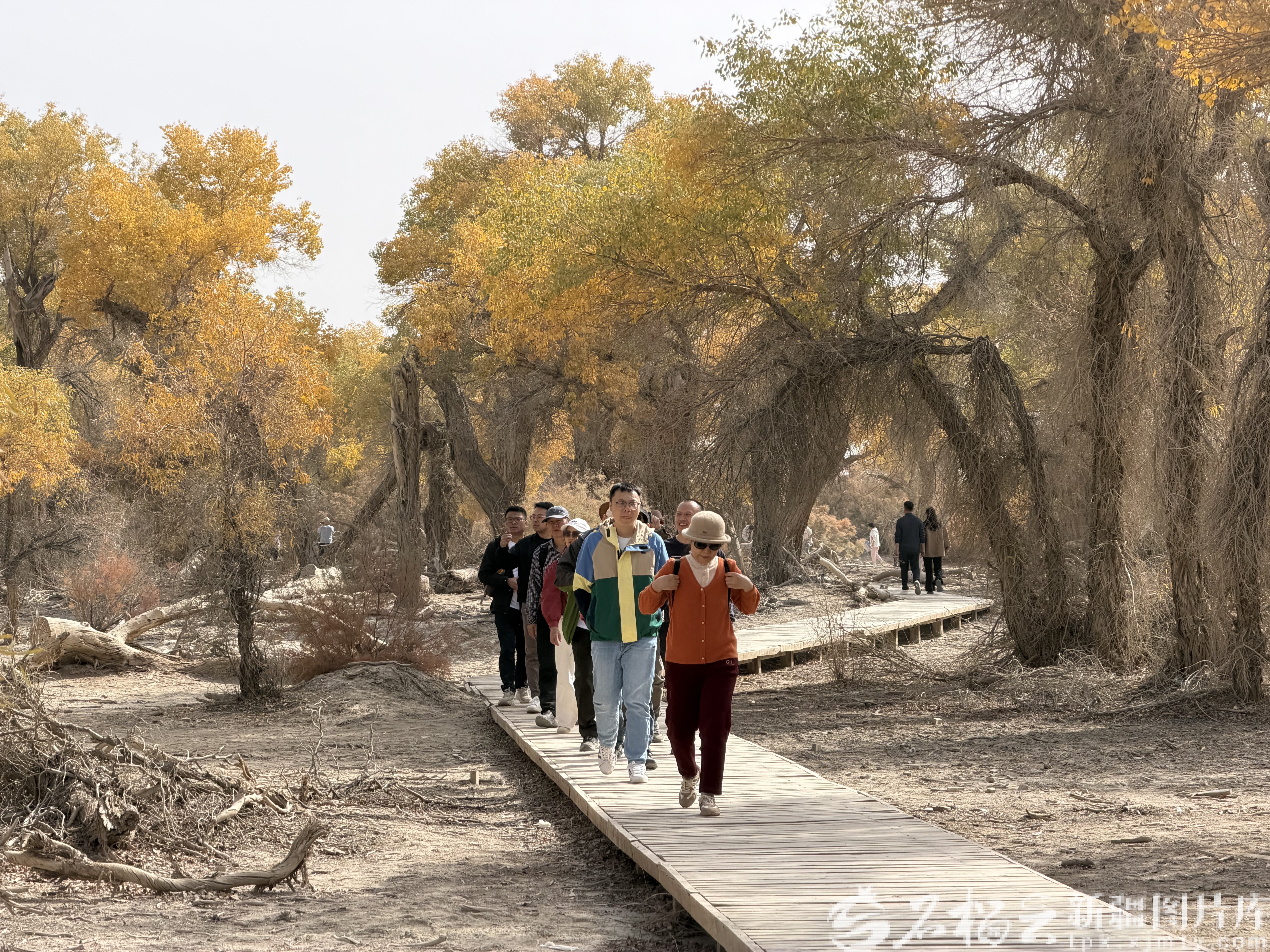 10月18日,游客在塔里木胡楊林公園游玩。林海 攝