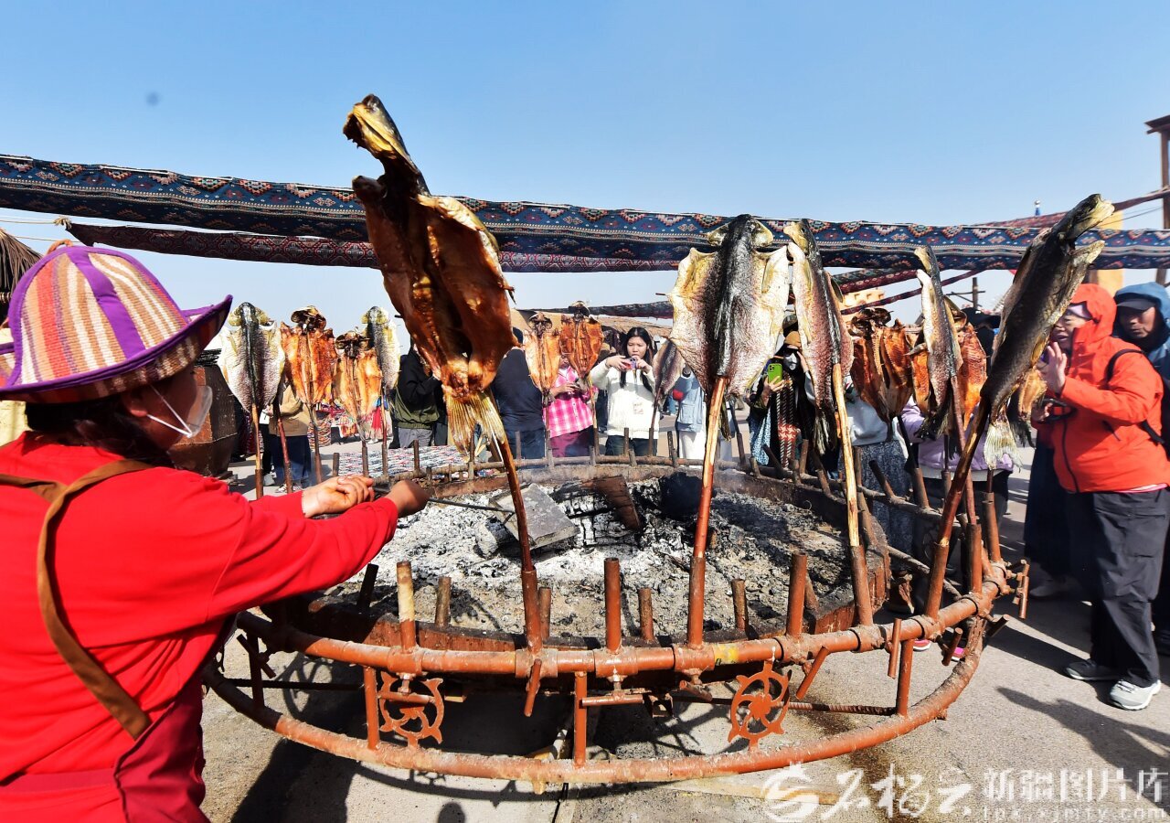 10月18日,活動現(xiàn)場的羅布人烤魚。