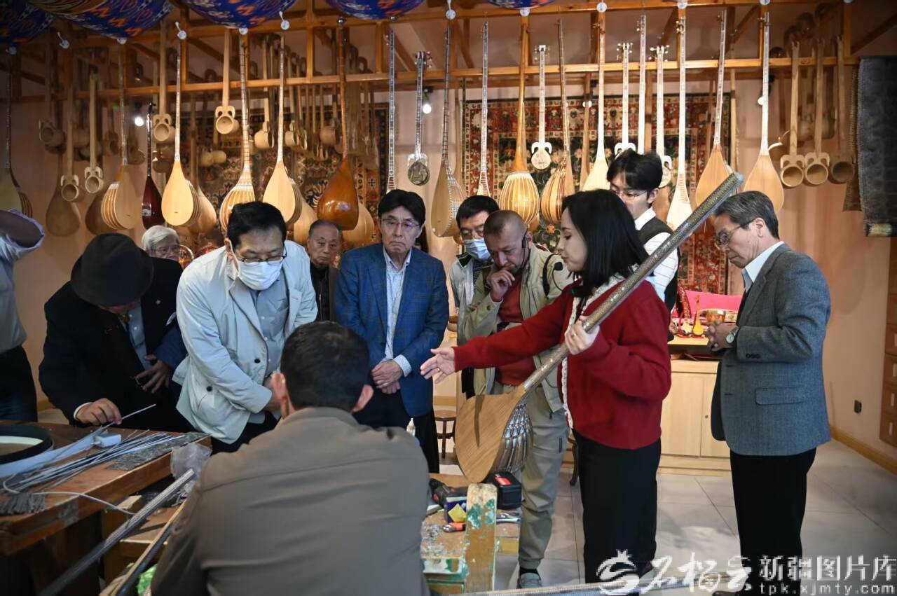 10月17日,日本知名學(xué)者和經(jīng)濟(jì)界人士代表團(tuán)參觀中國(guó)新疆民族樂(lè)器村。任鵬程攝