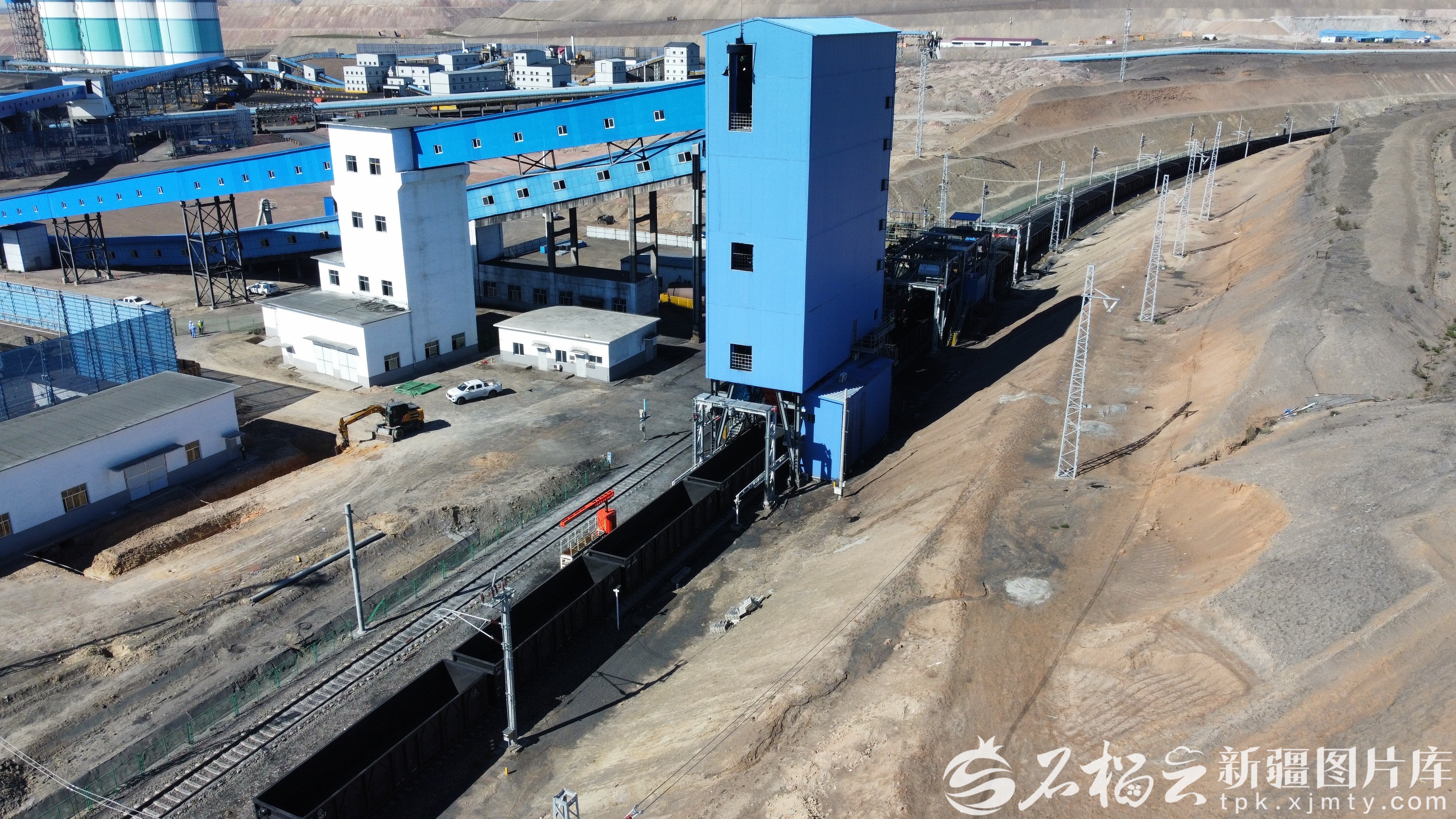 一列煤運列車在準(zhǔn)東煤礦環(huán)線裝車點裝煤。陳乾 攝