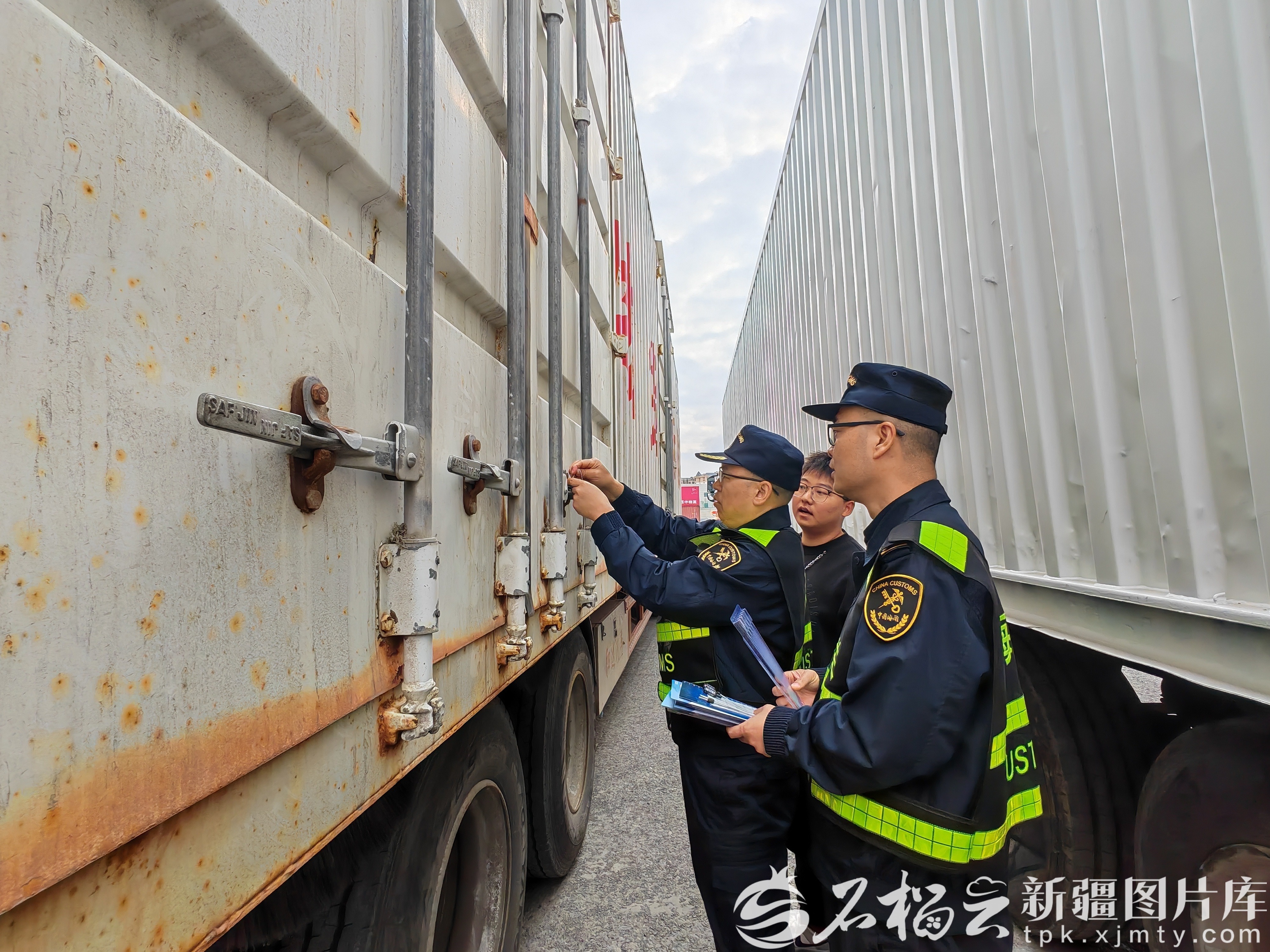 10月20日,烏昌海關(guān)關(guān)員對(duì)車輛進(jìn)行施封作業(yè)。張婷婷 攝