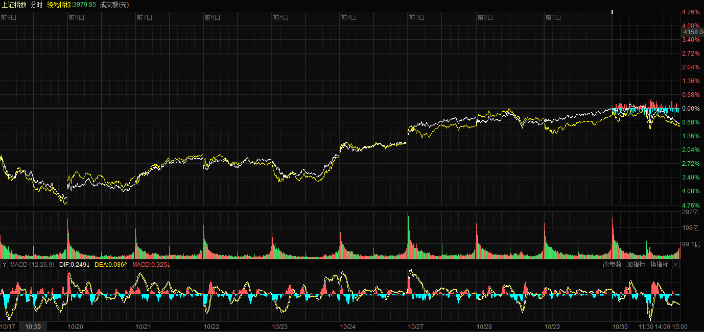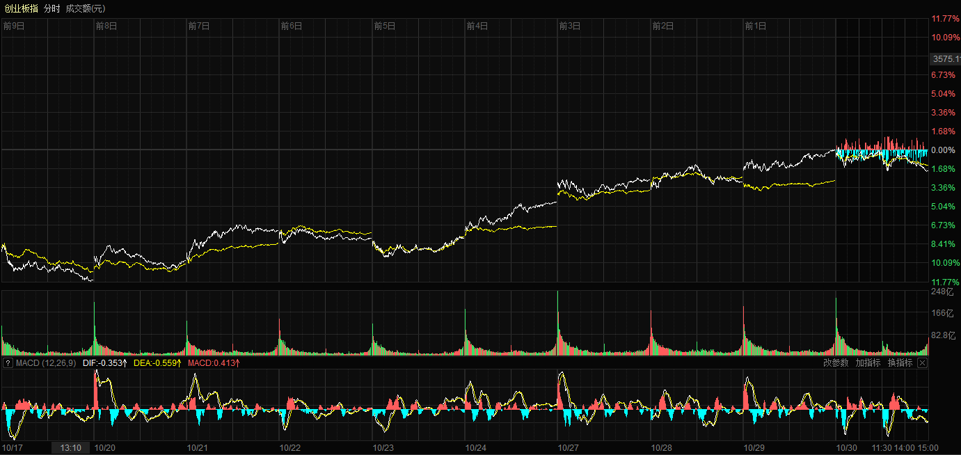 天山網(wǎng)-新疆日?qǐng)?bào)訊(記者康顥嚴(yán)報(bào)道)10月30日,A股三大指數(shù)集體回調(diào)。截至收盤,滬指跌0.73%,報(bào)收3986.90點(diǎn);深證成指跌1.16%,報(bào)收13532.13點(diǎn);創(chuàng)業(yè)板指跌1.84%,報(bào)收3263.02點(diǎn)。滬深兩市成交額達(dá)到24217億元,較昨日放量1656億元。