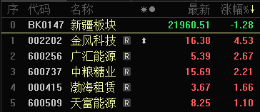 10月30日新疆板塊股價(jià)漲幅排名(來源:東方財(cái)富)。