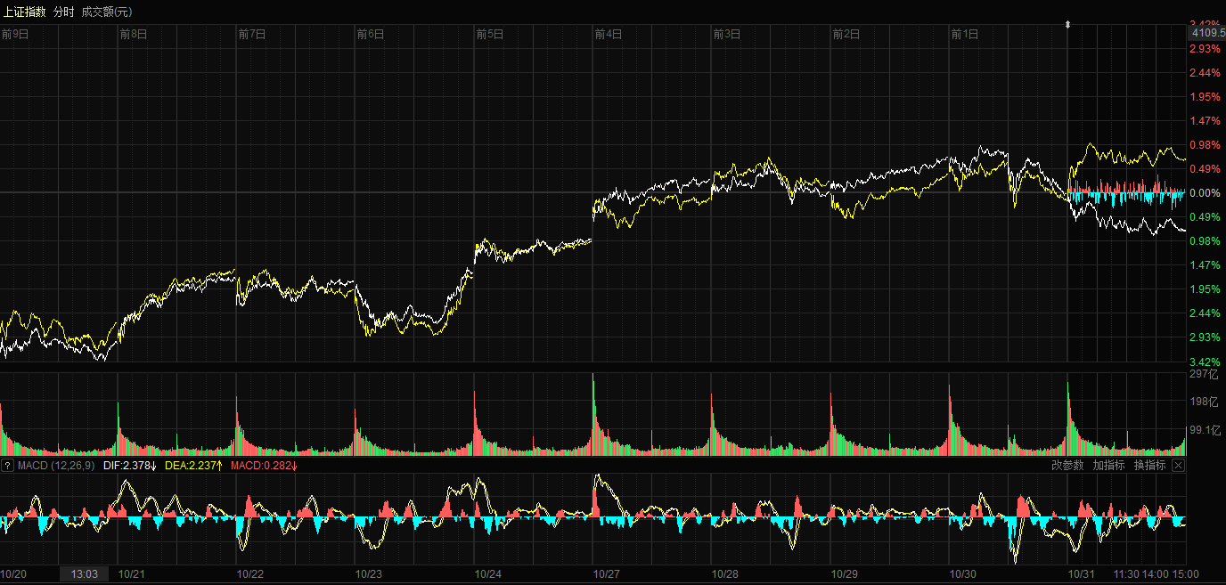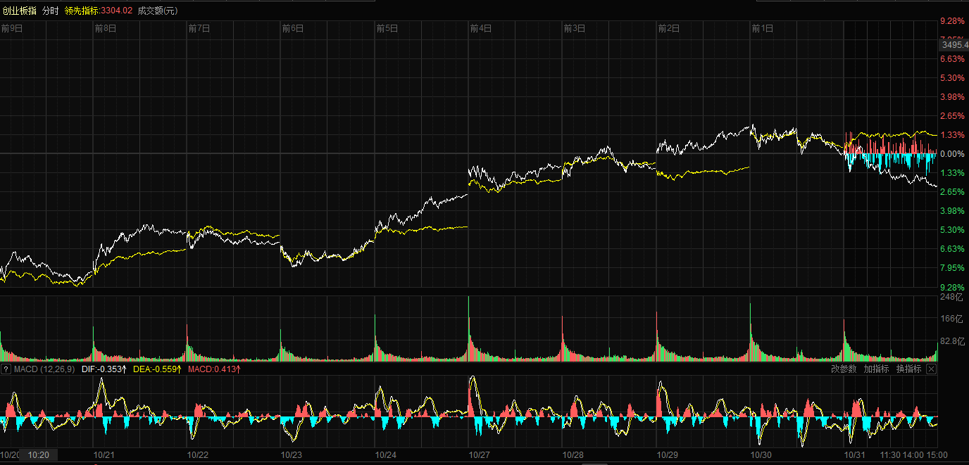 天山網(wǎng)-新疆日報訊(記者康顥嚴(yán)報道)10月31日,A股三大指數(shù)集體回調(diào)。截至收盤,滬指跌0.81%,報收3954.79點(diǎn);深證成指跌1.14%,報收13378.21點(diǎn);創(chuàng)業(yè)板指跌2.31%,報收3187.53點(diǎn)。滬深兩市成交額達(dá)到23178億元,較昨日縮量1039億元。