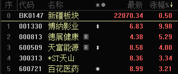 10月31日新疆板塊股價漲幅排名(來源:東方財富)。
