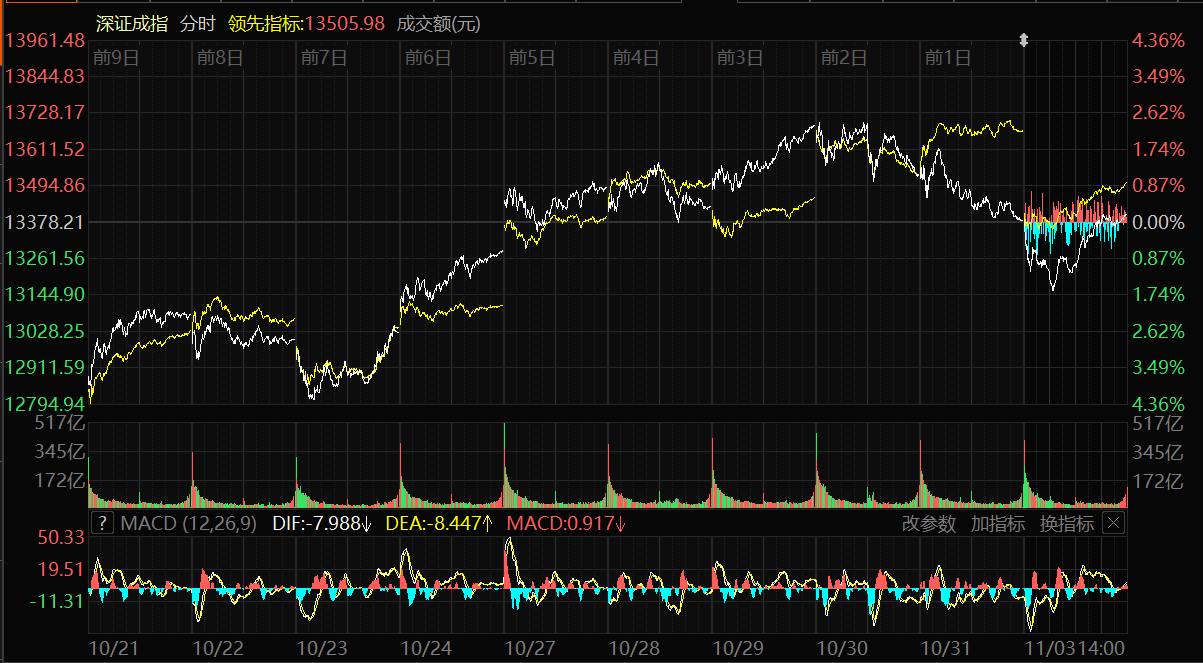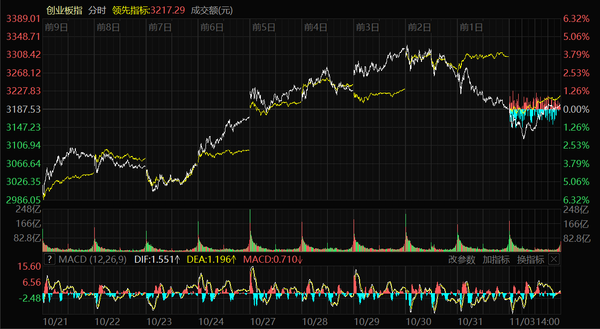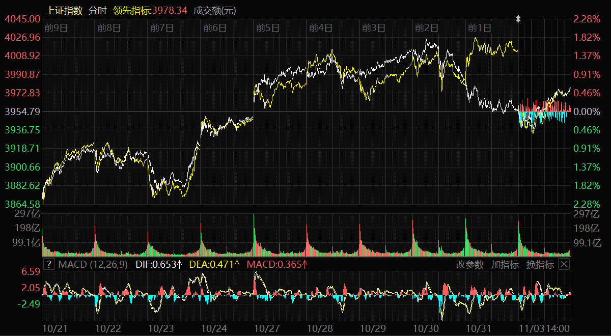 天山網(wǎng)-新疆日報(bào)訊(記者冉虎報(bào)道)11月3日,A股三大指數(shù)集體小幅收漲。上證指數(shù)漲0.55%,報(bào)收3976.52點(diǎn);深證成指漲0.19%,報(bào)收13404.06點(diǎn);創(chuàng)業(yè)板指漲0.29%,報(bào)收3196.87點(diǎn)。滬深兩市成交額達(dá)21071億元,較10月31日縮量2107億元。