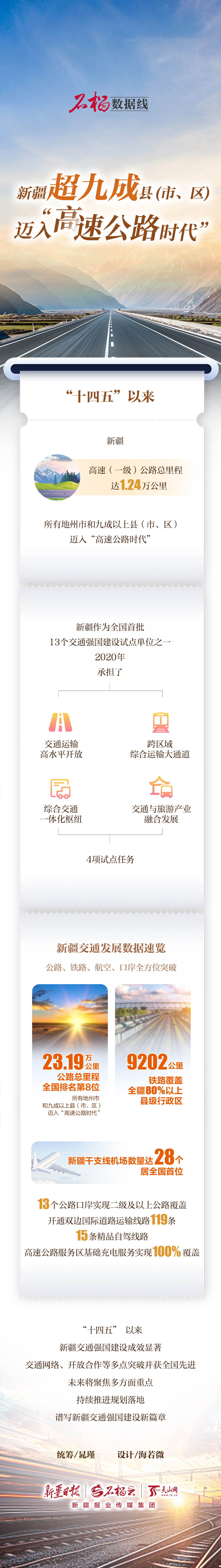 “十四五”以來,新疆交通強國建設(shè)呈良好發(fā)展趨勢,高速(一級)公路總里程達1.24萬公里,所有地州市和九成以上縣(市、區(qū))邁入“高速公路時代”。