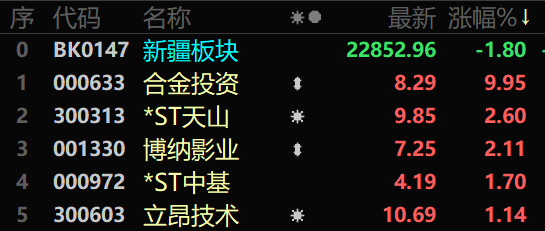 11月18日新疆板塊股價(jià)漲幅排名(來源:東方財(cái)富)。