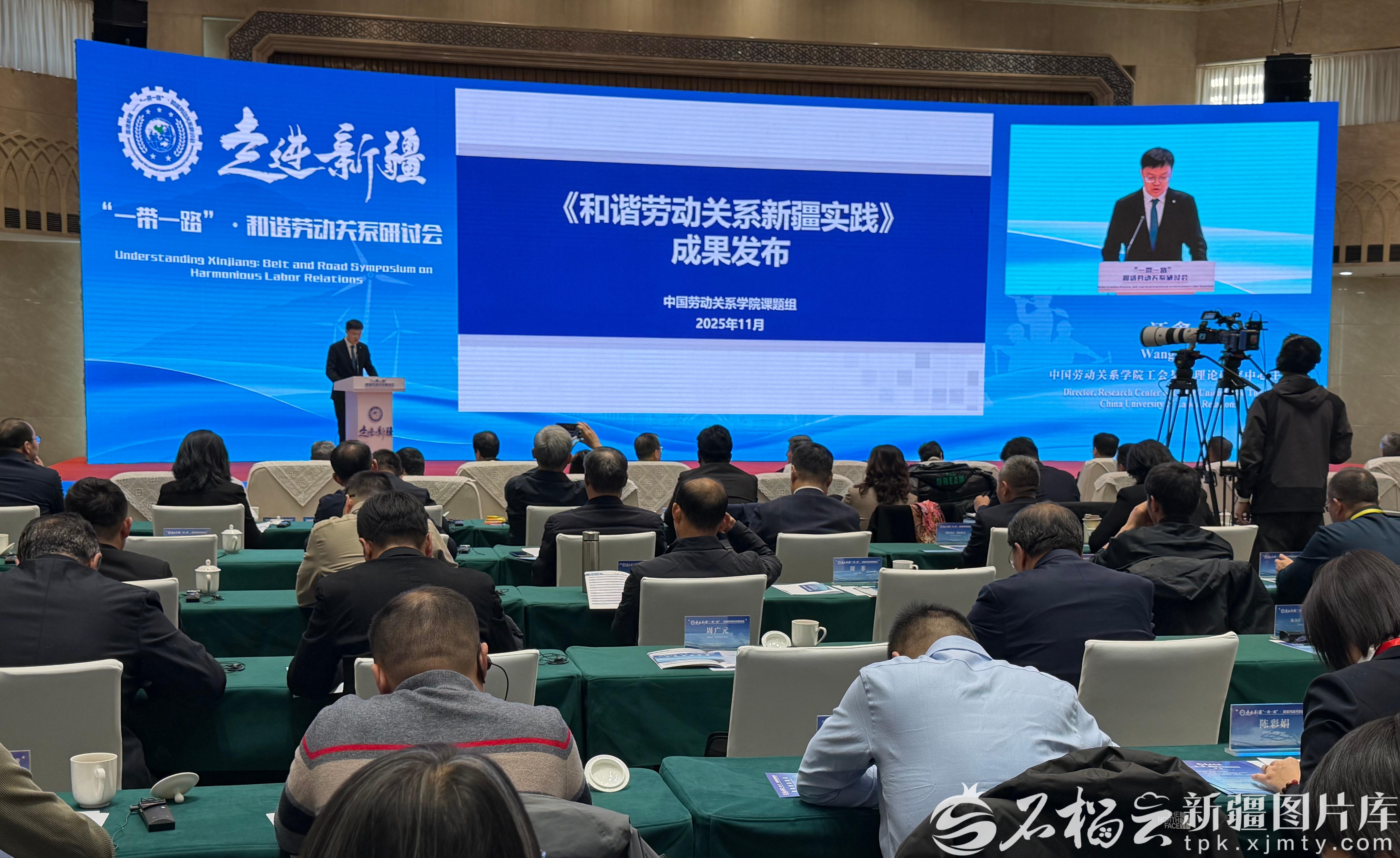 11月18日、19日,走進新疆“一帶一路”和諧勞動關(guān)系研討會在烏魯木齊召開,會上發(fā)布了《和諧勞動關(guān)系新疆實踐》成果。李雙行 攝