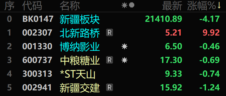 11月21日新疆板塊股價漲幅排名。(來源:東方財富)