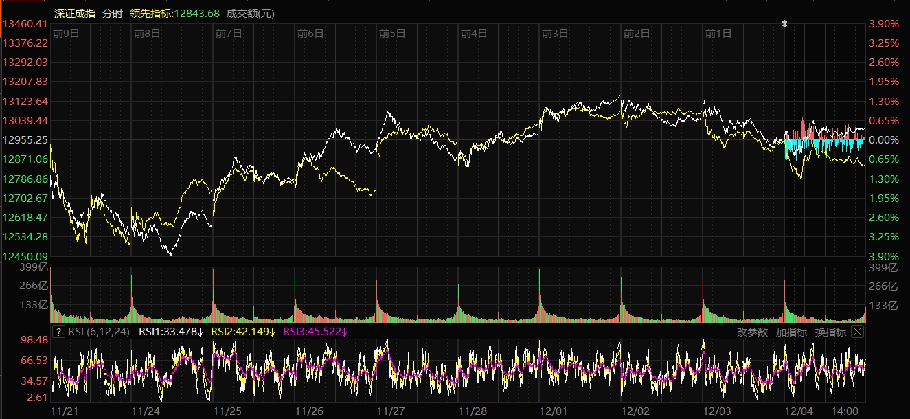 天山網-新疆日報訊(記者趙悅報道)12月4日,A股三大指數漲跌不一。截至收盤,滬指跌0.06%,報收3875.79點;深證成指漲0.40%,報收13006.72點;創(chuàng)業(yè)板指漲1.01%,報收3067.48點。滬深兩市成交額15490億元,較昨日縮量1210億元。