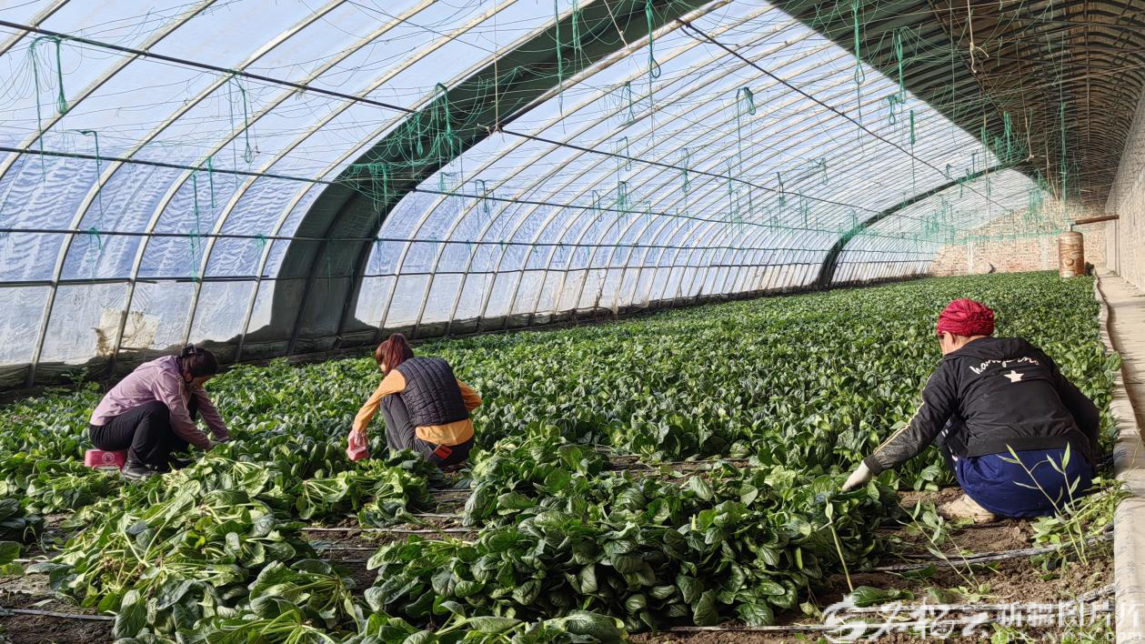 在沙雅縣托依堡勒迪鎮(zhèn)鐵熱克村,村民們正在采摘菠菜,準(zhǔn)備運(yùn)往市場銷售。王永江 攝