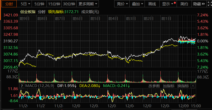 創(chuàng)業(yè)板指數(shù)近十日變化趨勢(shì)(來(lái)源:東方財(cái)富)。