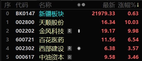新疆板塊指數(shù)近十日變化趨勢(來源:東方財富)。
