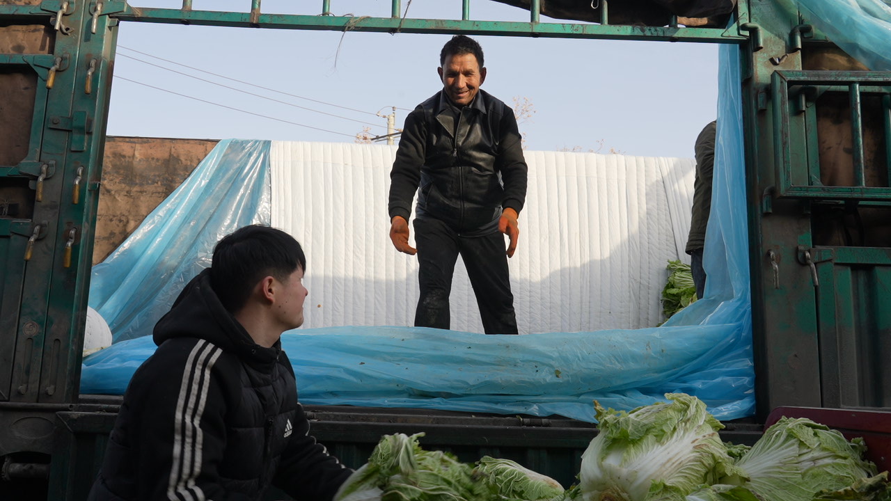 直播間賣出的大白菜被裝上貨車,送往各地消費(fèi)者手中。