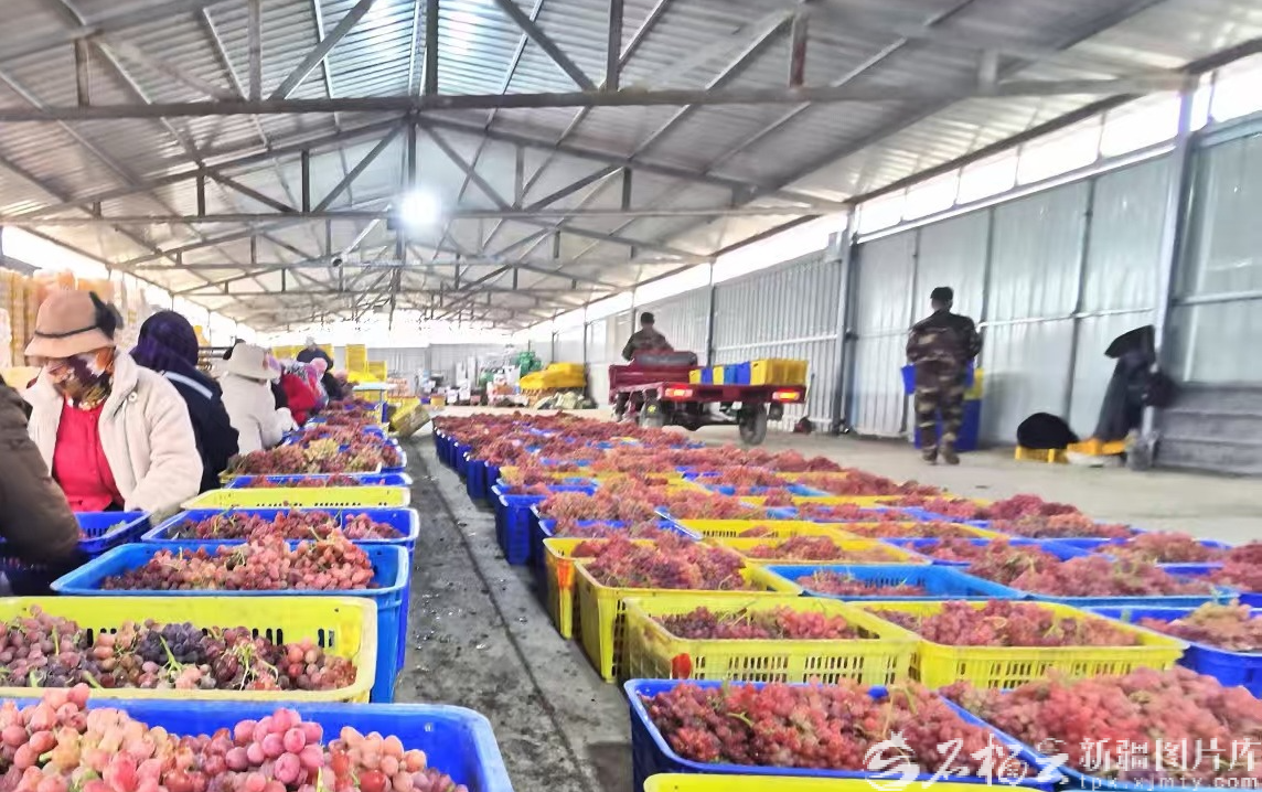 在博樂市西域豐農(nóng)葡萄種植農(nóng)民專業(yè)合作社聯(lián)合社的分揀車間內(nèi),工人們正在分揀葡萄,這些葡萄會(huì)通過冷鏈運(yùn)往國(guó)外。記者 曹華攝